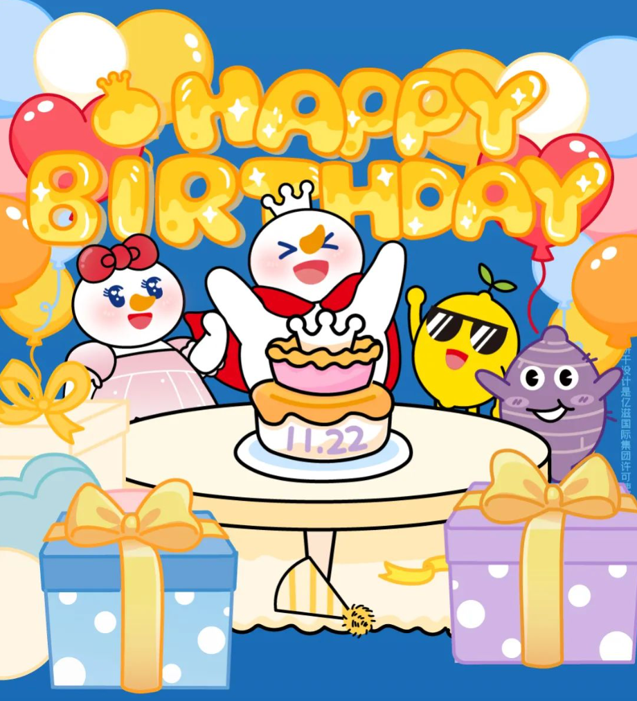 11 月 21 日,「蜜雪冰城」发布雪王生日 party 视频,联动熊出没、阿狸、萌芽熊等多个 IP,并主推“雪王生日限定款”新品奥利奥饼干风味蛋糕奶茶,售价 8 元 / 杯。