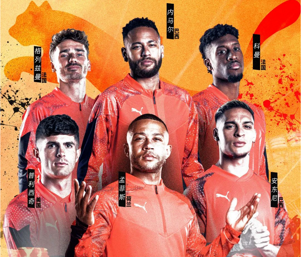 11 月 21 日,「PUMA」宣布推出与足球明星内马尔合作的“追梦者”系列套装。该系列采用金色和橙色结合的设计。