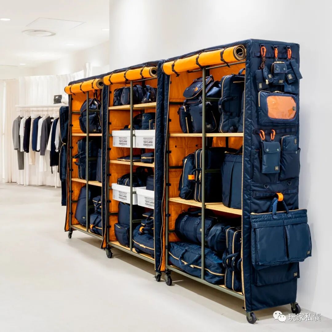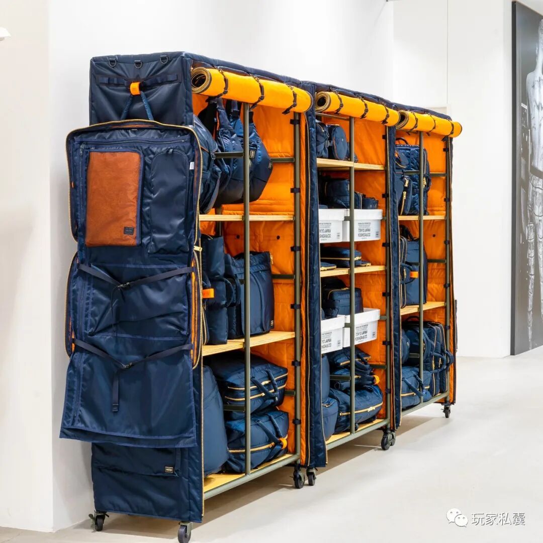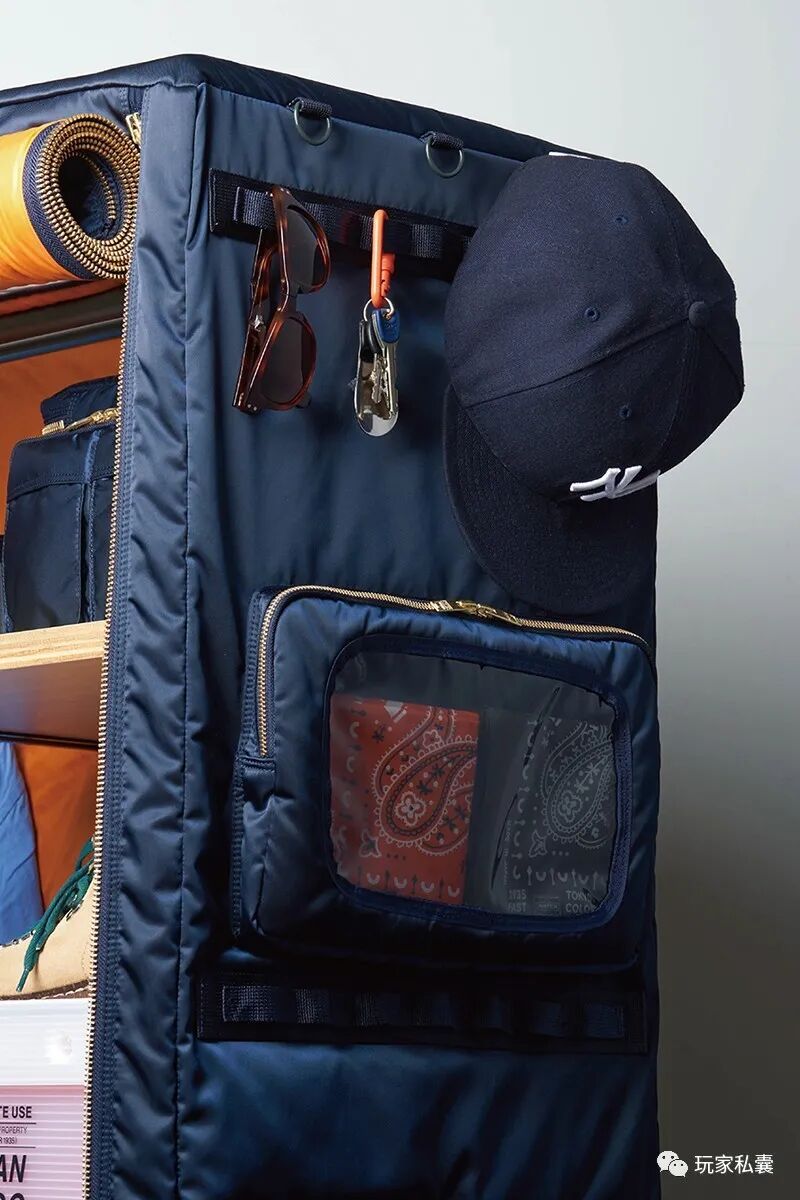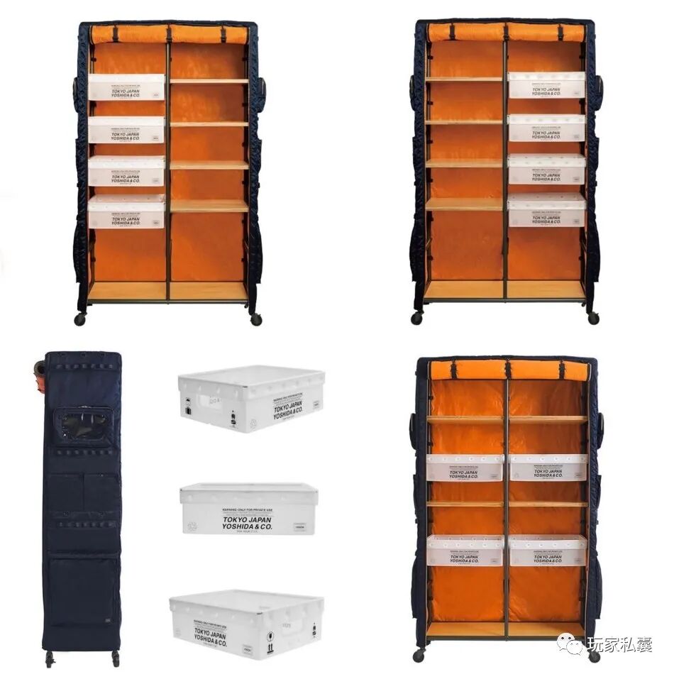 售价49万5000日元(约合两万八千块RMB)的“简易布衣柜”如今正式搬入Yoshida Kaban官方网站,不限量发售。柜子高1.8米,长1米,深0.4米,使用钢架结构,表面覆以跟TANKER的最新色款IRON Blue同样之地的面料做成的柜门,柜门上也设计了跟TANKER系列背包一样的“魔术粘”式的口袋,用来收纳零散小物,并附送四个聚丙烯塑料收纳匣,格局可以根据需要自行调整。