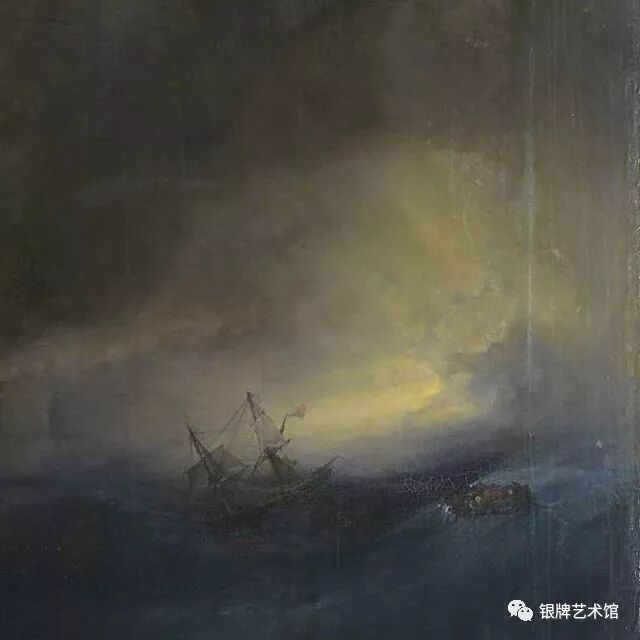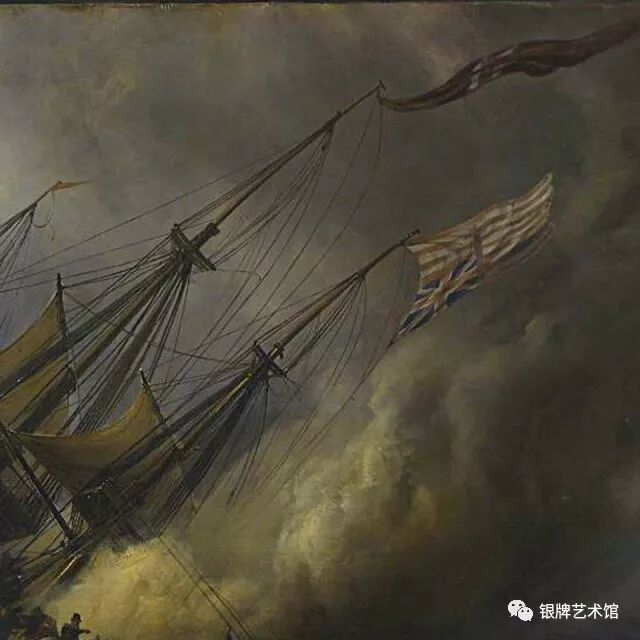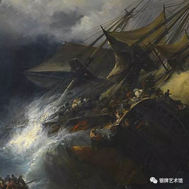 《肯特海难》描绘的是在狂风暴雨中即将被巨浪倾复的帆船,天空墨汁一般的乌云黑压压汹涌翻腾而来,这是一个惊心动魄的场面,一个怵目惊心的瞬间。