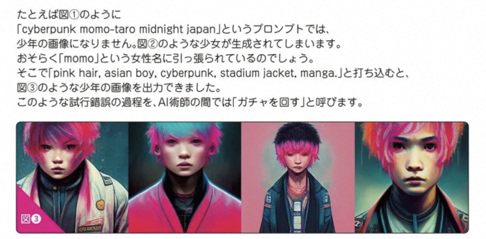 比如最初在创建角色时,他像吟唱咒语般输入了“cyberpunk momo-taro midnight Japan”(赛博朋克、桃太郎、午夜日本)的关键词。