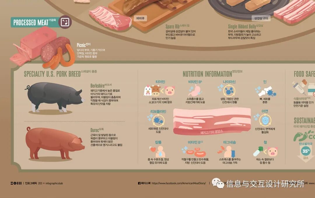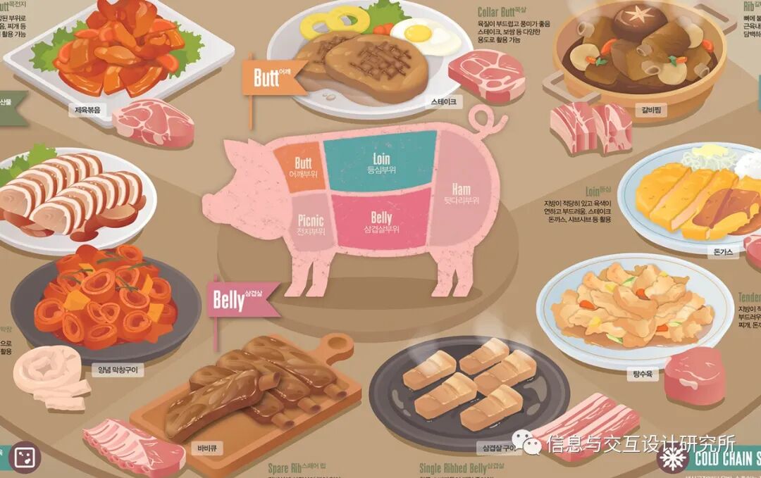 该作品传达了猪从农场到餐桌经历的各种环节,包括猪的品种、产地,以及猪肉各部分的食用方式等。