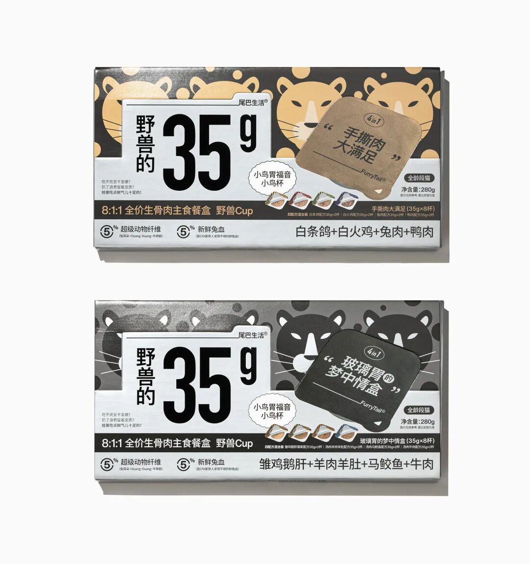 一面是产品名,另一面则直观展示肉类