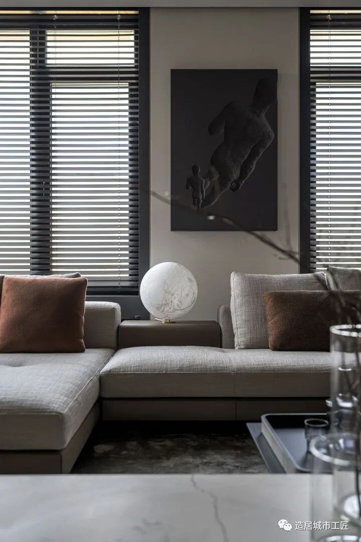 而对于大户型来说,沙发的尺寸选择条件就会相对于宽松一些,可以选择长度在170cm*220cm以上,背高在80cm*100cm的沙发,设计感和体积感会相对饱满一点的沙发,来让宽敞客厅变得舒适而具有温度。