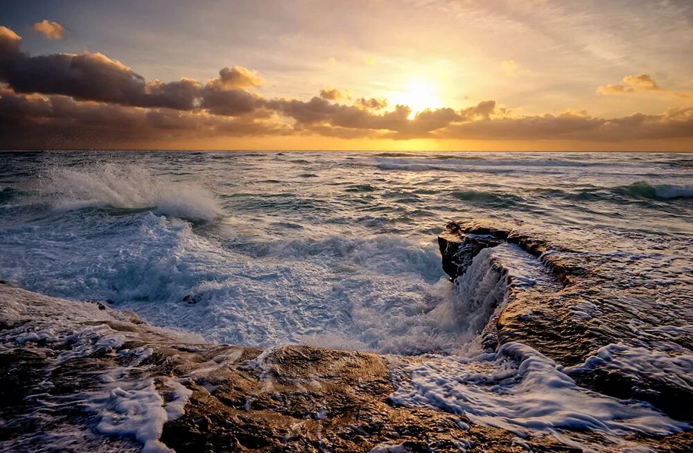 1960年1月的一天,萨尔克教授在时任圣地亚哥市长查尔斯·戴尔的陪同下,在太阳落山之前来到这里,站在海边的悬崖之上,天蓝的天空中映出落日余晖的橙色,海浪涌向沙滩,水面闪耀着金色条纹。