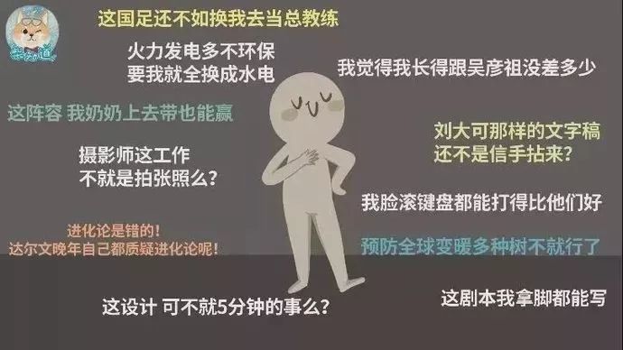 这就是典型的“达克效应”,生活中这种现象其实很常见。比如有的人对任何话题都能侃侃而谈,仿佛上知天文下知地理……作为听者的我们,有些领域确实所知不多,都判断不了他说的有几分真假。