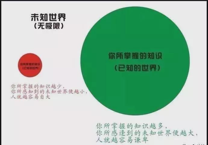 这两个圆圈的外面就是你们和我无知的部分。大圆圈的周长比小圆圈长,因此,我接触的无知的范围也比你们多。这就是我为什么常常怀疑自己的原因。”