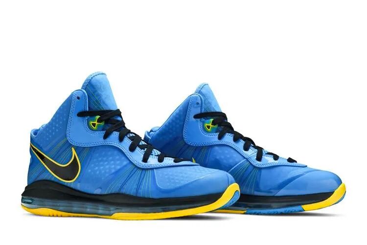 蓝黄色的搭配灵感来自于一张经典的剧集海报。之后这一配色还出现在了 LeBron IX Low 与 LeBron XII Low 上。