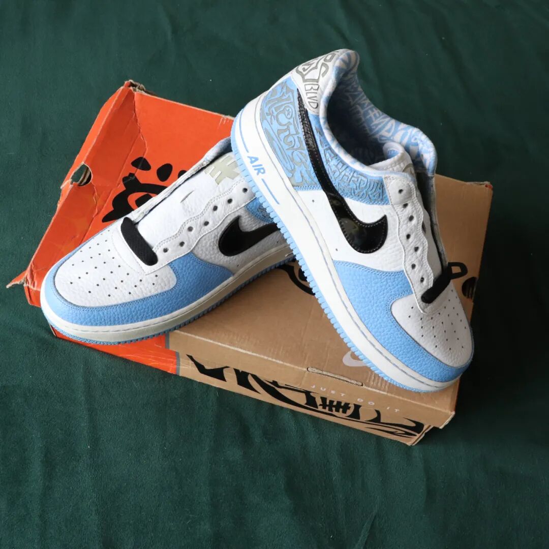 接下来我们重点聊一聊这双 AF1。2006 年,随着《Entourage》第三季的播出,这双 "神鞋" 也正式浮出水面。这双鞋没有公开发售,据传闻仅有 100 双左右的常规白蓝版本,并全部用于赠予剧组成员或亲友。但据传言曾有极少数量的鞋款在 Undefeated 店铺秘密发售。其稀少的数量与高昂的二级市场价格也让许多球鞋玩家望而却步,求之不得。