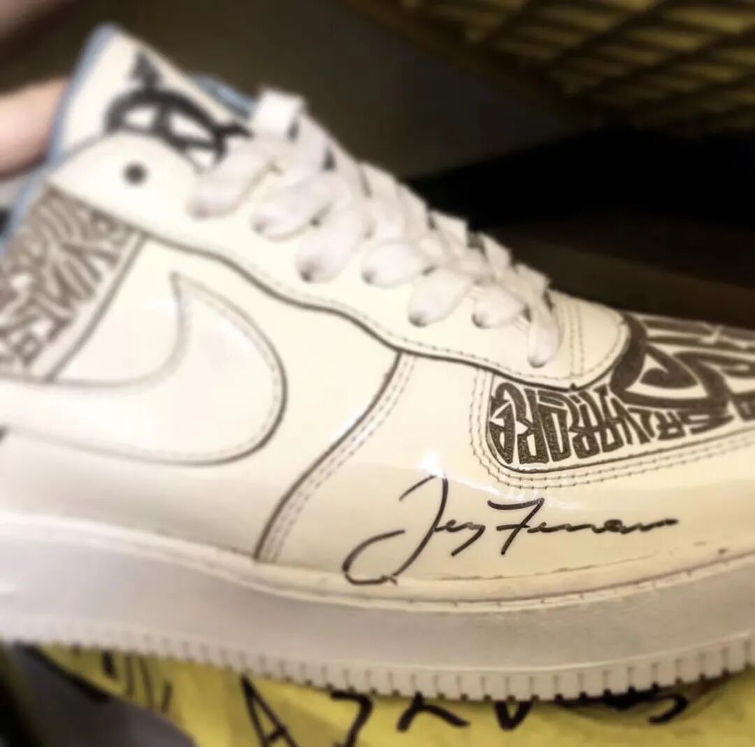 如果你恰好和 DJ Clark Kent 这样与 Nike 有密切联系的鞋头很熟,并且你又马上要过生日,那么你的生日礼物可能会很别致——著名 AF1 收藏家 Mayor 拥有的这双其鞋面上还搭载了 "MAYOR" 字样的镭射花纹,而这双鞋正是 DJ Clark Kent 送给他的生日礼物。这可并不是什么非官方的定制产物,而是直接出自 Nike 创意厨房之手。