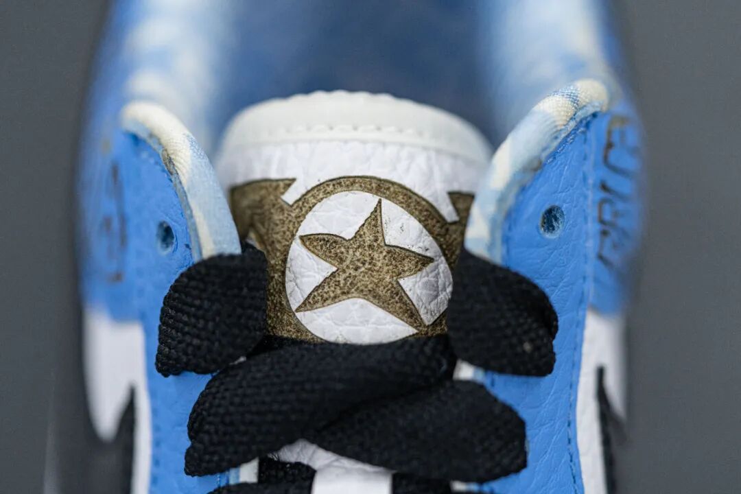 整体配色同样使用了出现在 AF1 上的大学蓝,并且在鞋头处还印有乌龟壳的纹路——这一灵感也来自于 "Turtle" 这一角色。在数量上它同样十分稀有,仅制作了 10 双赠予相关剧组成员。