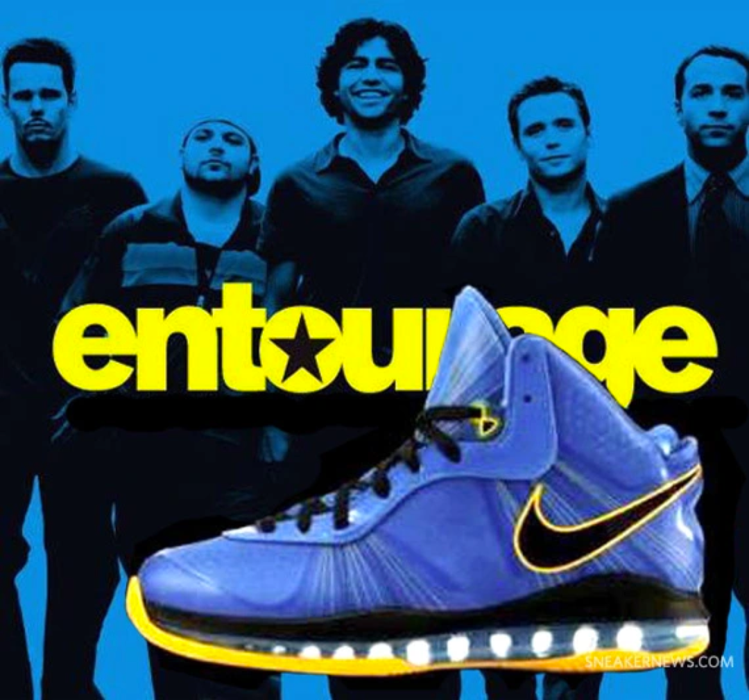 LeBron James 对于这部剧同样十分喜爱,并在 2009 年亲自客串了一把,也算是过了一次演员瘾。2011年「Entourage」这一主题正式出现在了他的签名鞋款 LeBron VIII V2 上。
