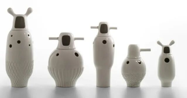 而西班牙设计师Jaime Hayon笃定地抛开花与花艺,将热闹童真、缤纷有趣的幻想灌入花瓶,于是,便有了它们——
