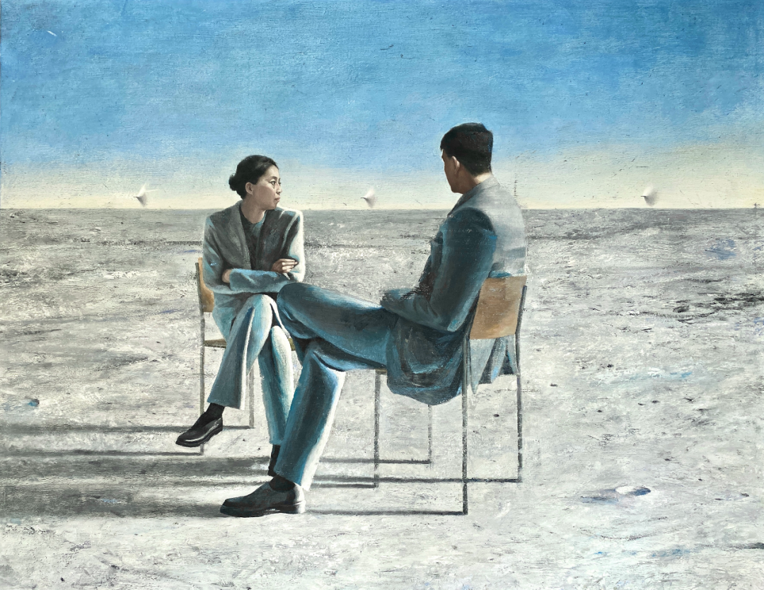 没有极度私人化的场景,杨玥琪将当代的青年生活融入宏大的场景中,以一种严肃的方式对“欺骗”用“一笑而过”以示回应。这种场景/大场景的气势给予了想象的充分蔓延,仿佛观众的思绪也被“抽离”,没有任何具象的物体可以给予回复。
