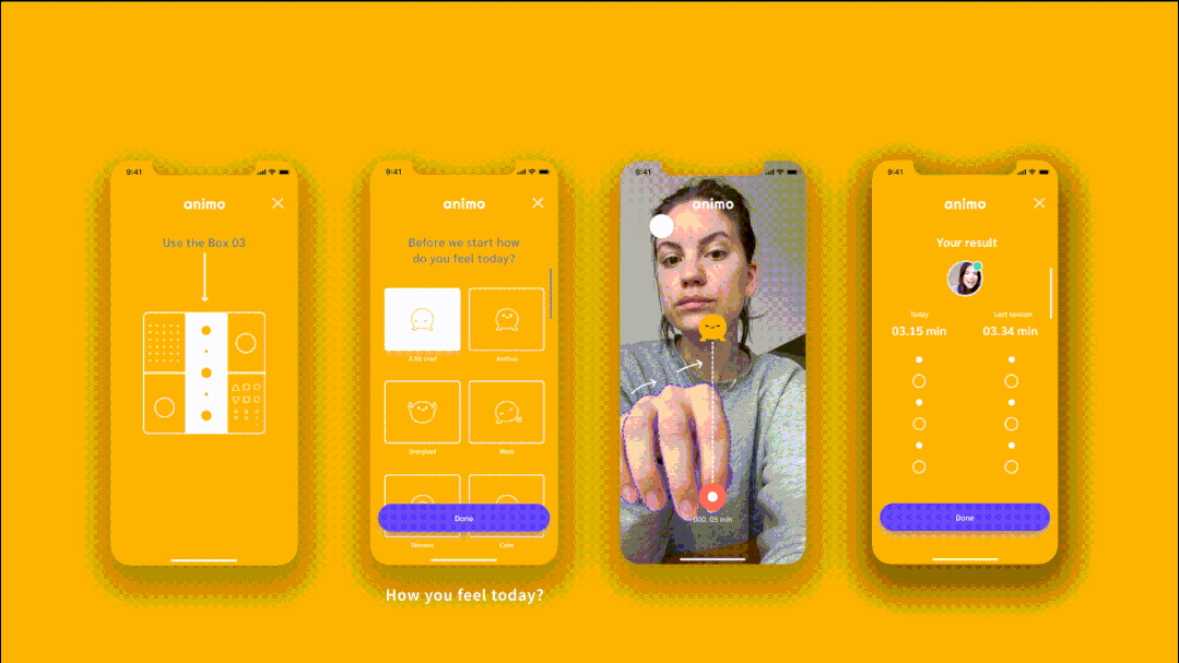 这是一款交互式触觉康复游戏,其目标群体为年轻中风患者。Animo为这些患者提供了五个不同的练习箱,其所带有的AR辅助设计则可以帮助他们进行自我调节并了解该如何进一步改进。