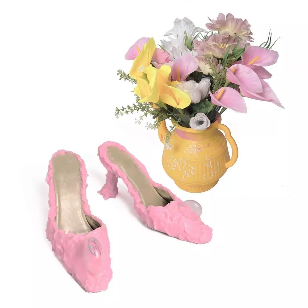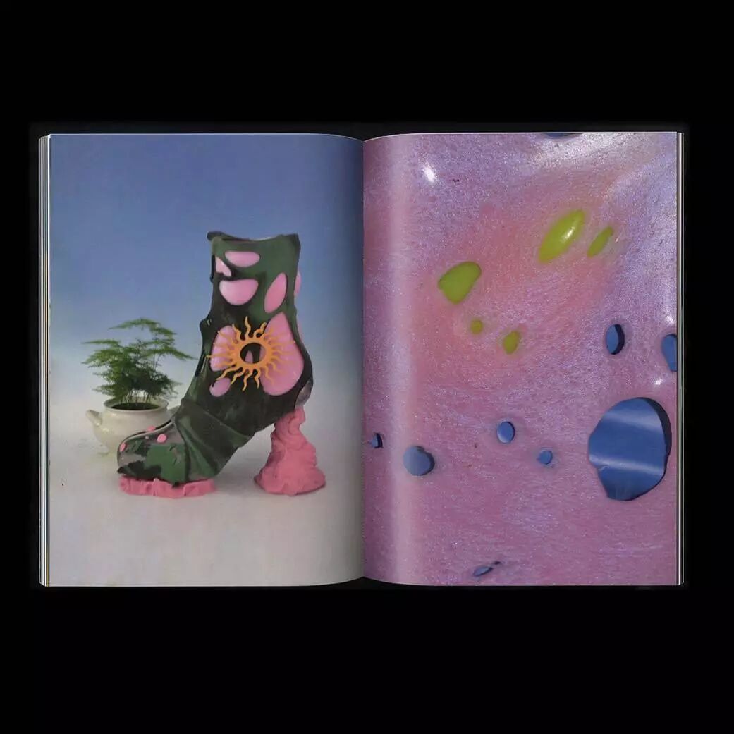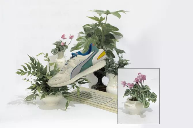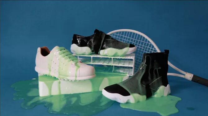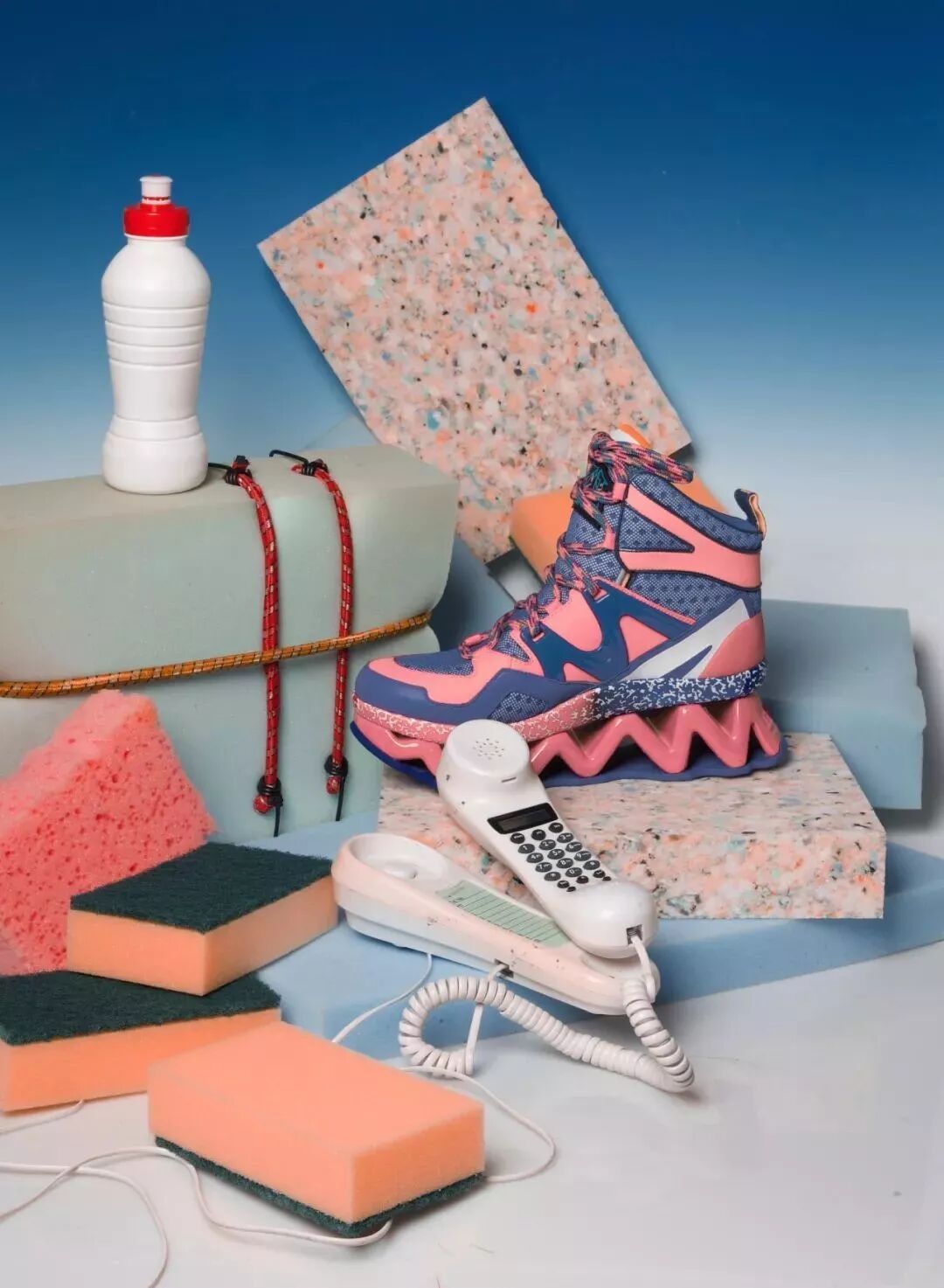 正如他的Reebok Fury Insta Pumps系列所暗示的那样,他的审美更像"怀旧的摩托罗拉翻盖手机,粉彩色的Furby娃娃,80年代的电子游戏和90年代的棒球帽"所表现的那样。这种复古怀旧的物件往往是他的“颠覆视觉”创作的起点。