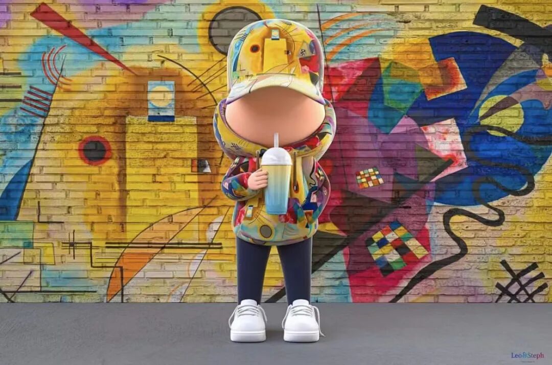 Leo&Steph:大家好,我们是Leo Steph,Leo曾任法国最大电商平台Veepee的艺术总监,Stéphane在媒体领域深耕20余年,与欧洲顶级媒体公司合作。因此我们与各大品牌设计师,明星,以及网络名人都有长期良好的关系。我们创作的艺术形象KID CUP(杯子小孩)是一个没有五官,拿着吸管杯的中性角色,意在让观众联想到一个积极,充满童心和趣味的世界。