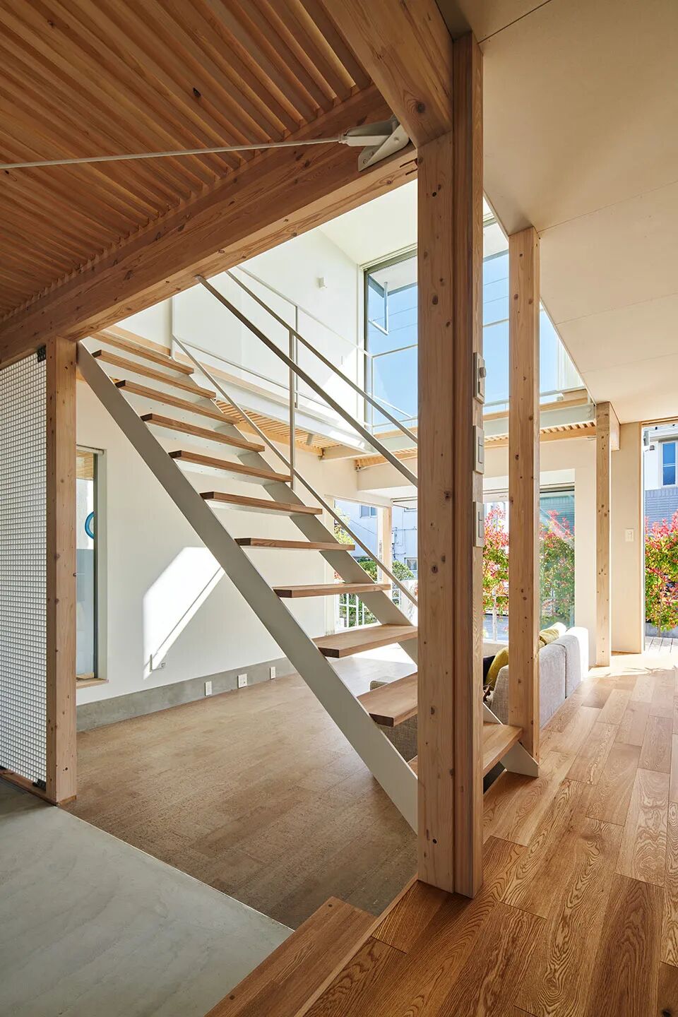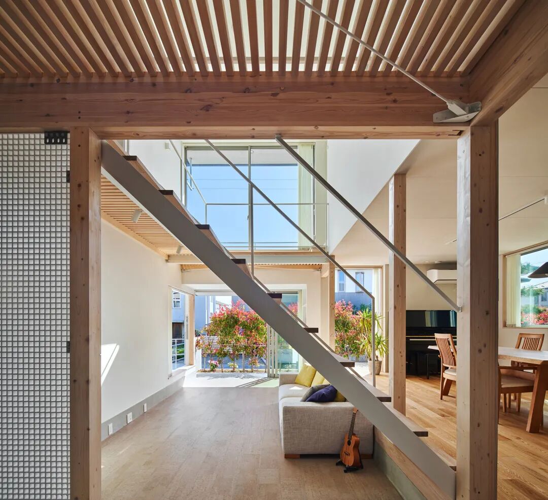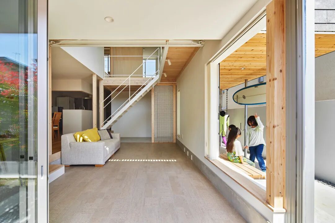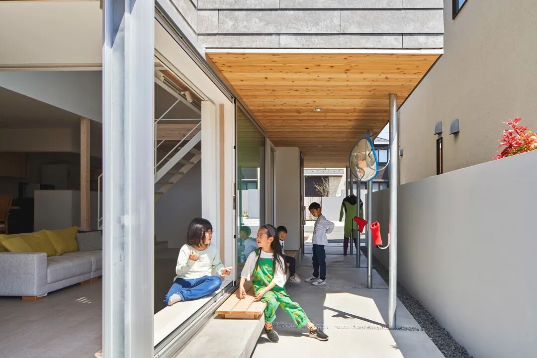 探索,是设计师留给居住者的命题。无形的土间,开启了新的邻里关系与相处模式;没有护栏的楼梯,可以帮助年龄段适宜的孩子,启动自我身体判断与反馈的觉知;生活的内容与重心正悄悄改变,也让每一位家庭成员都找到了新的乐趣。邻里间,孩子们的交流互动日益增多,他们收获了半户外的游乐场地和“抄近道”的乐趣;男主人开始接触冲浪户外运动,客厅里也常常出现女主人阅读与练习瑜伽的身影。这栋住宅为生活带来盎然生机,也激发了街区的活力,让更多的人将“家”的一部分,开放给邻居与城市。就在不久前,街区的另一位邻居也已经展开计划,希望在道路连接的地方加设一条新的通道,欢迎大家常来常往。