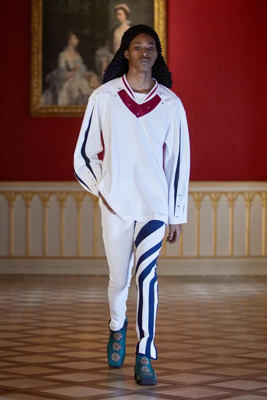 Kiko Kostadinov呈现出的服装依旧带有简练实用的视觉,你能感受到他对于结构与细节的精心处理,又能感受到他为了方便活动,而简化繁复装饰的用心