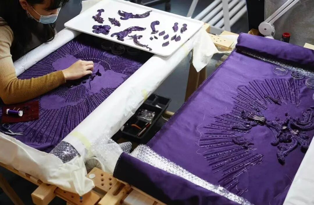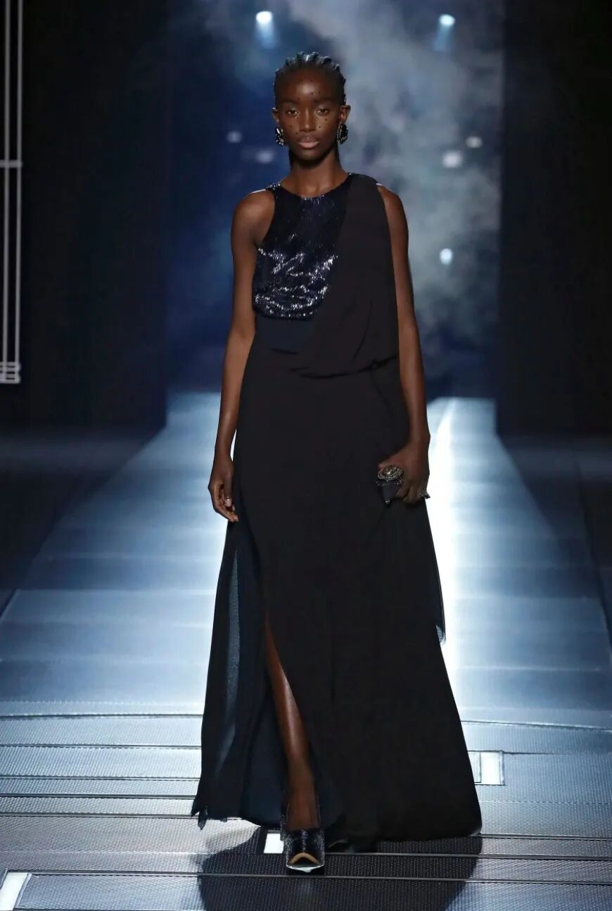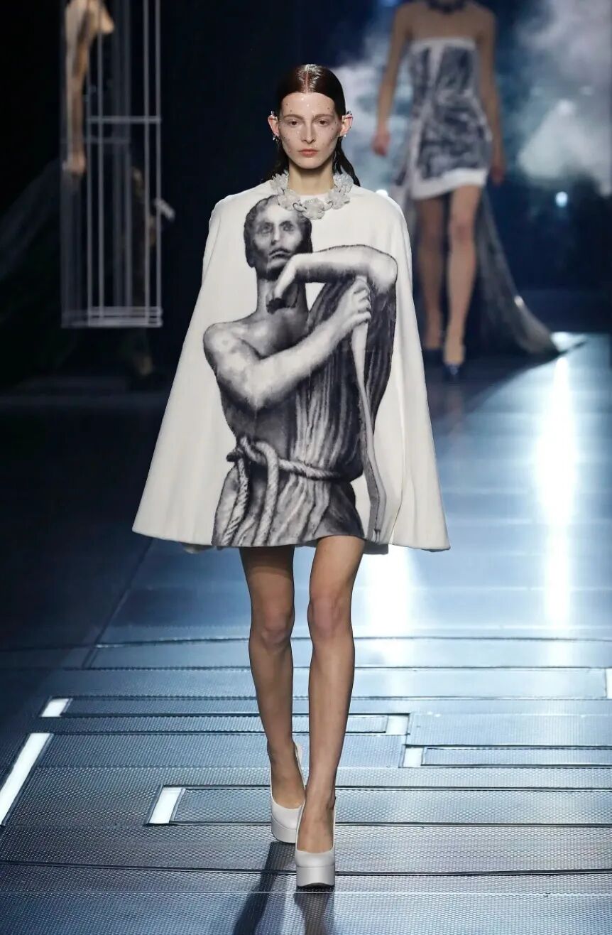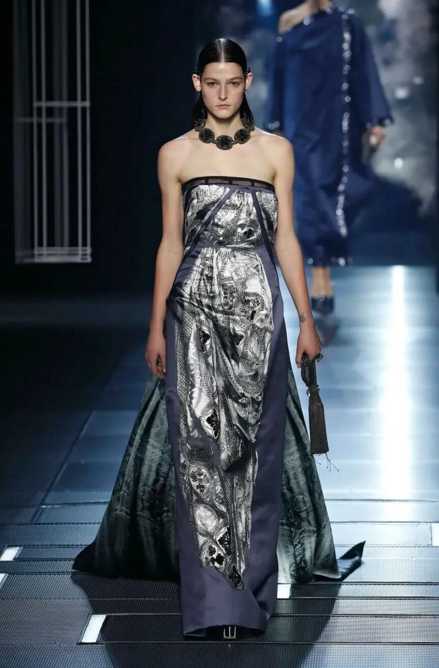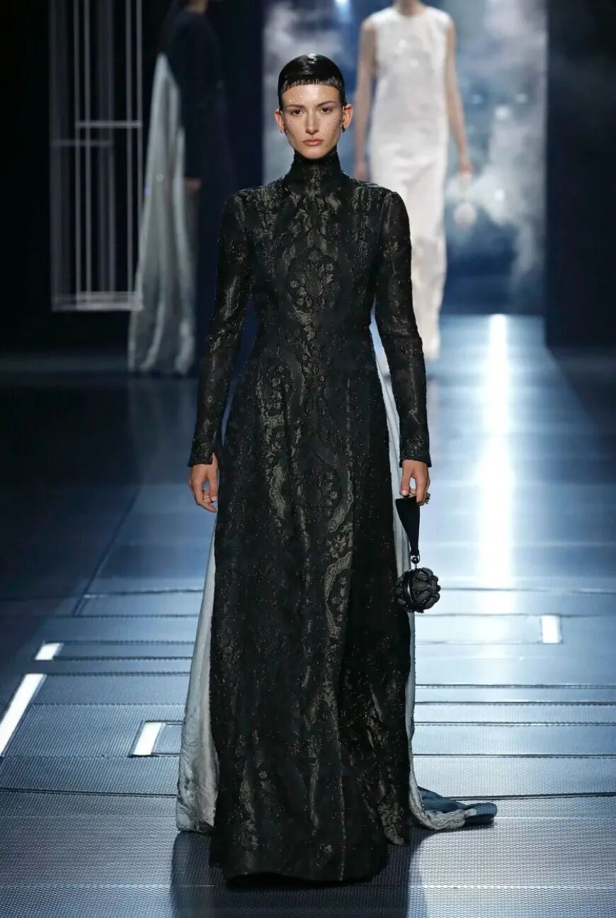 FENDI 2022春夏高定系列秀场华丽肃穆,从科技呈现的古老拱门缓缓走来,走过的是璀璨的文明,从古典到现代,雕塑壁画书写在身上,伴着身后的烟火气,迎接新生罗马。