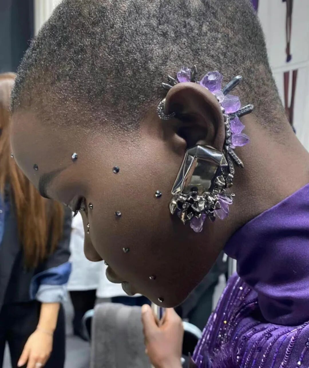 在这一季高定系列中,修道僧袍,希腊披挂式礼服;圣母,罗马人物,罗马喷泉图案与模特星空的妆容,以及银河系般的亮片装饰,带我们逃避到圣洁的天堂。