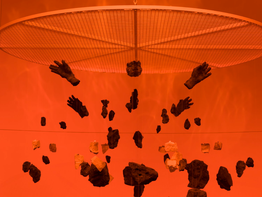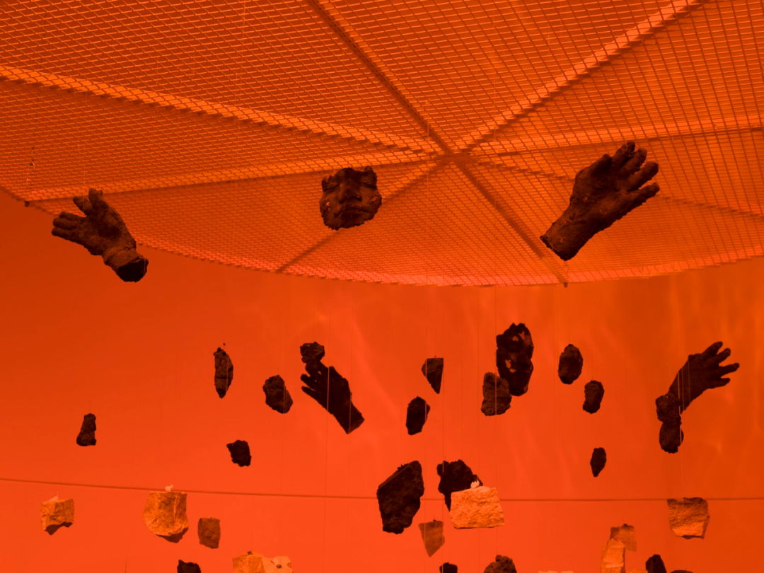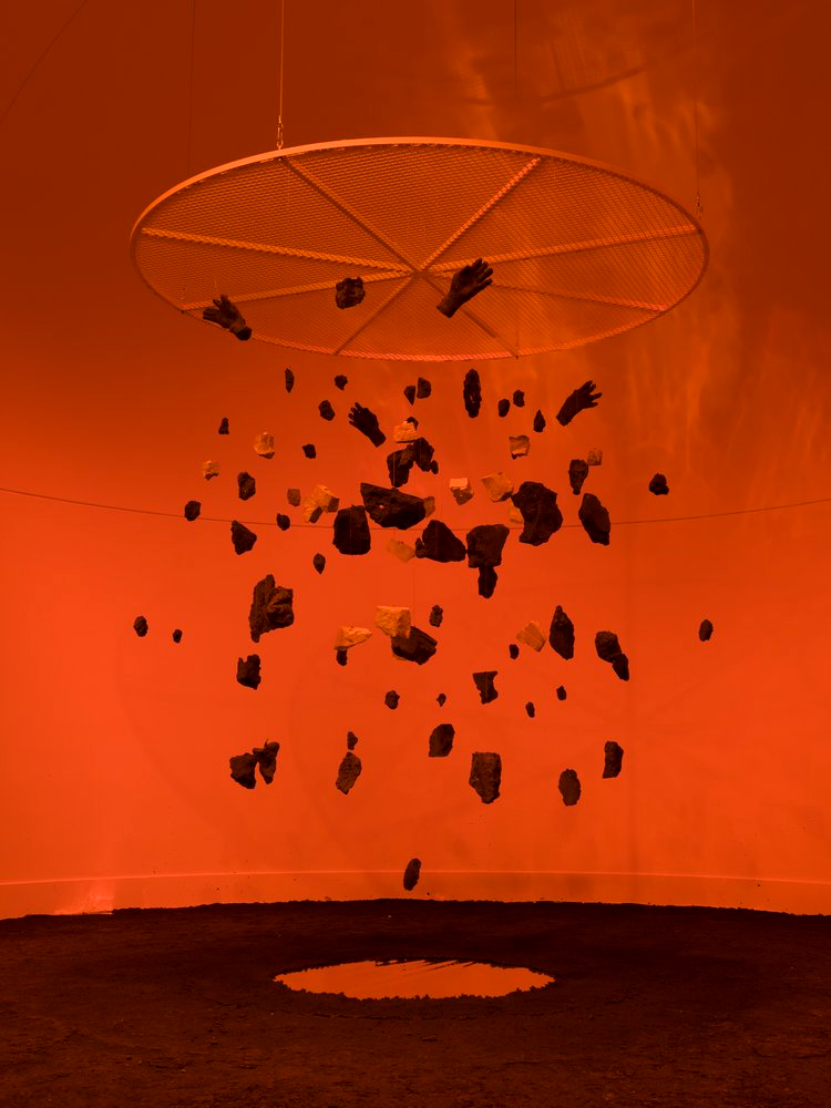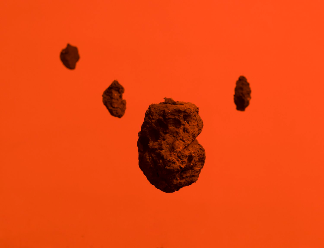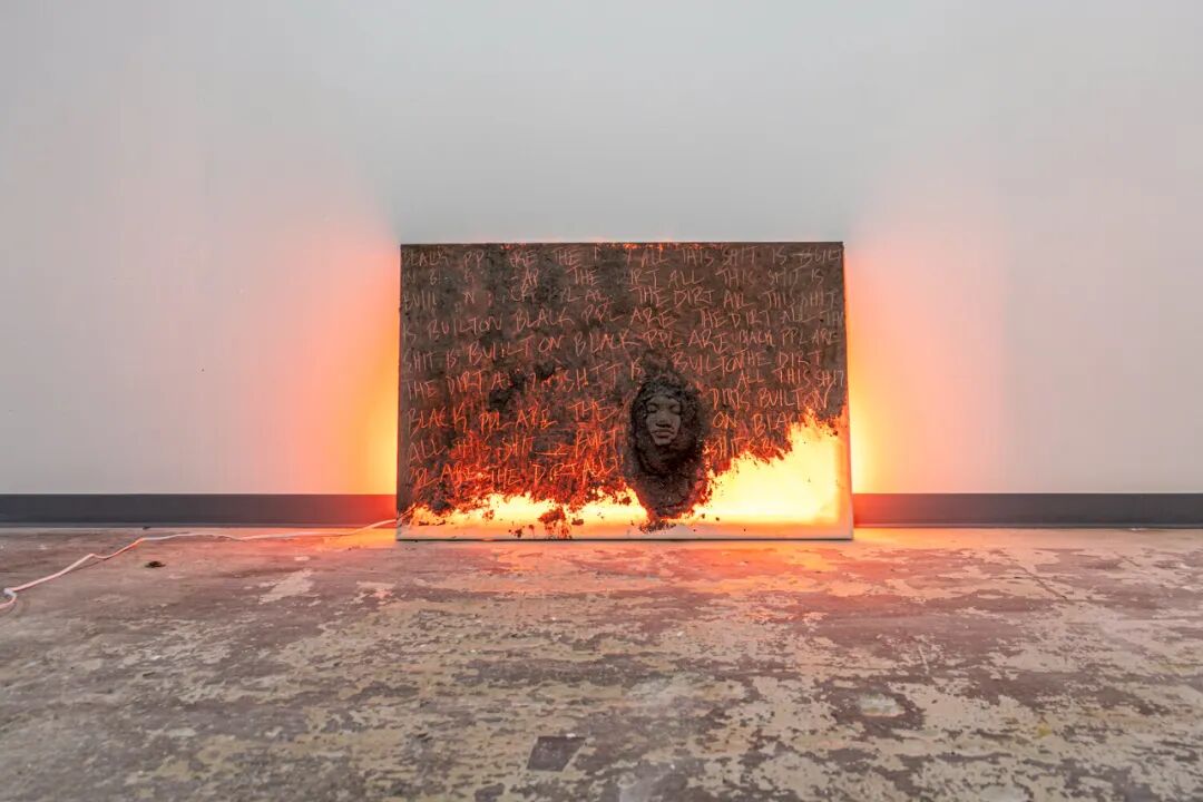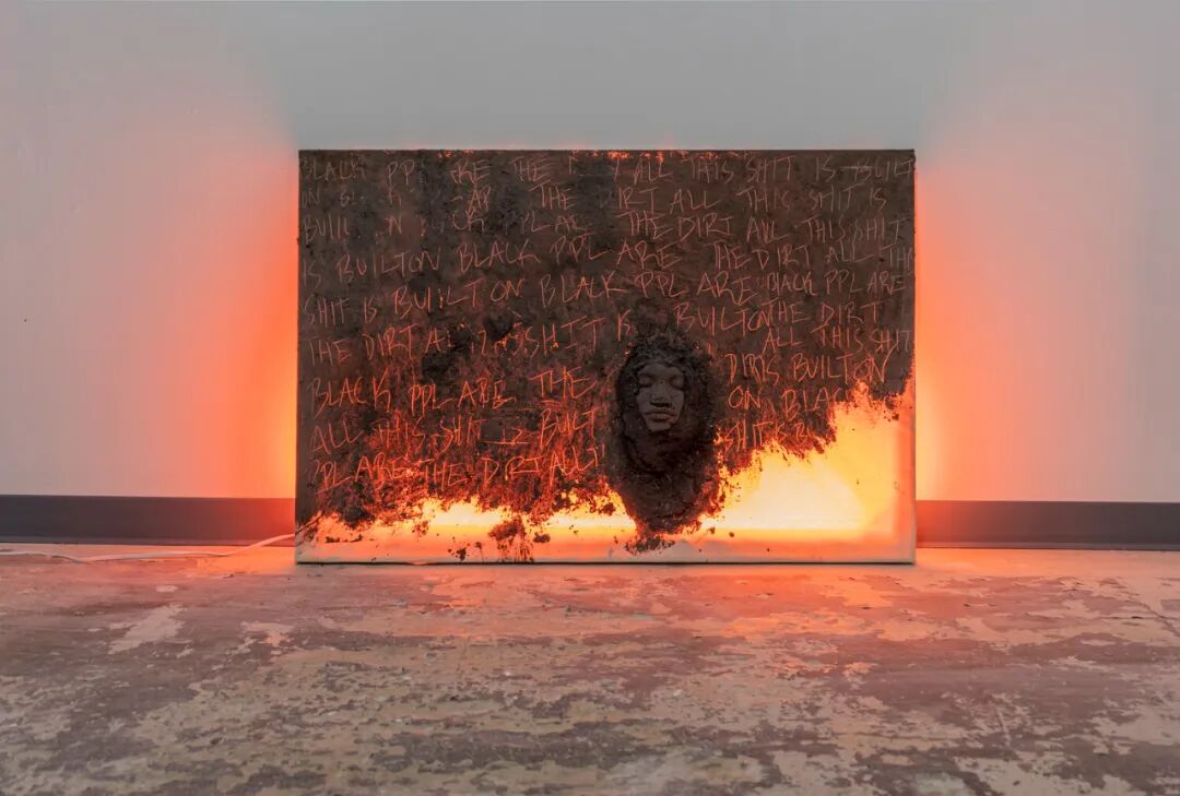 soil on canvas, orange fluorescent light