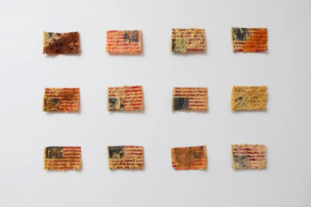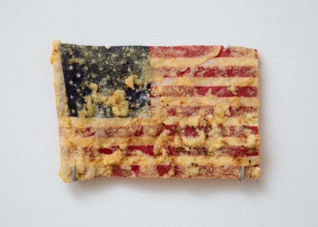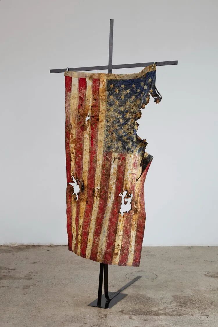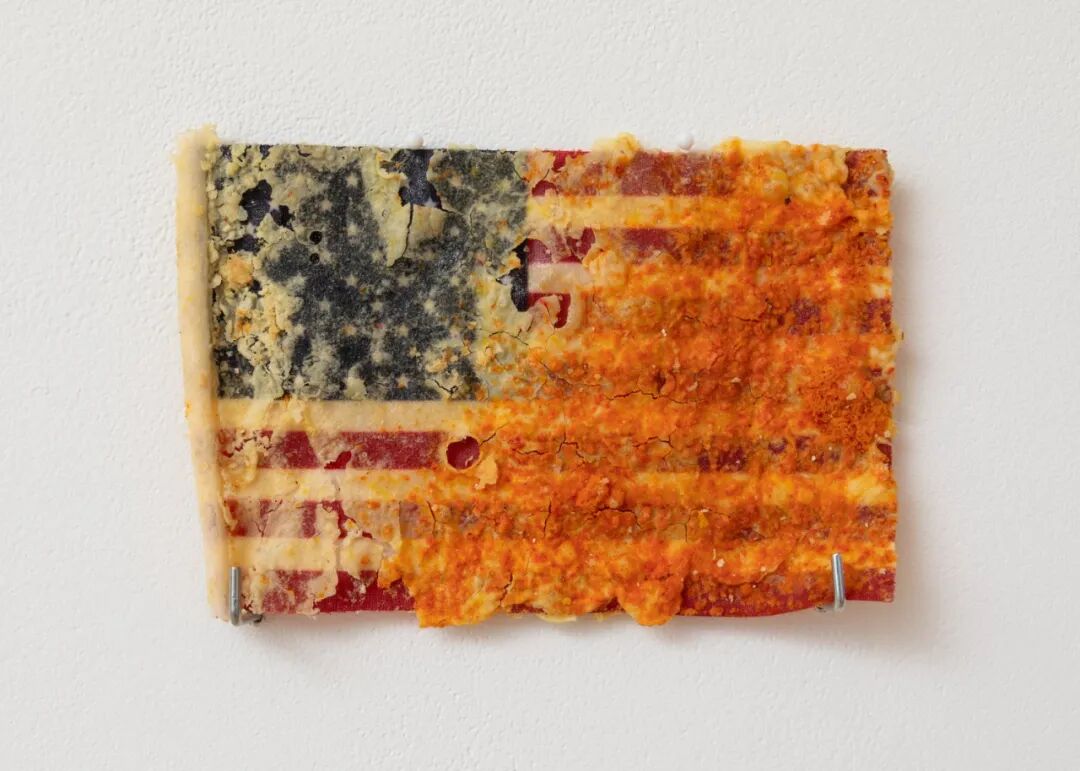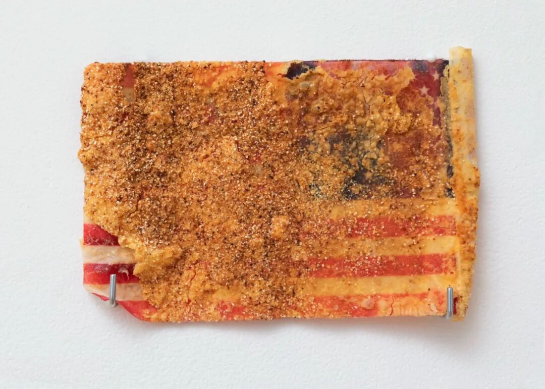 Nylon flag previously flown over U.S. capitol building, paprika, flour, steel base and hardware