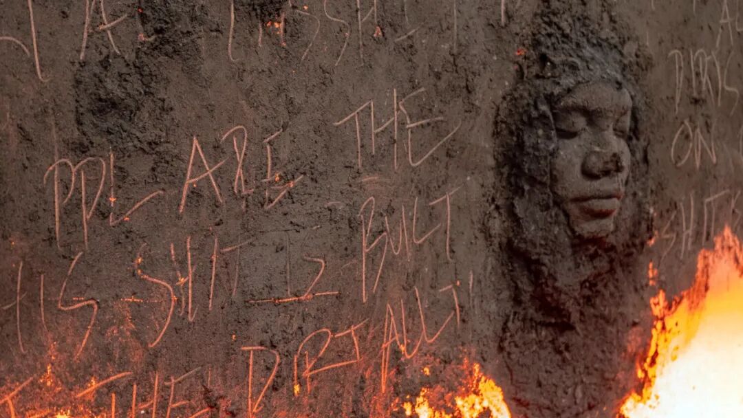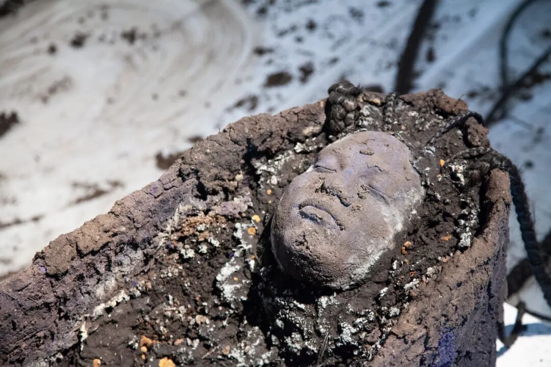 earth, binder, synthetic fiber, hardware, vaseline, black truffle, steel base and armature