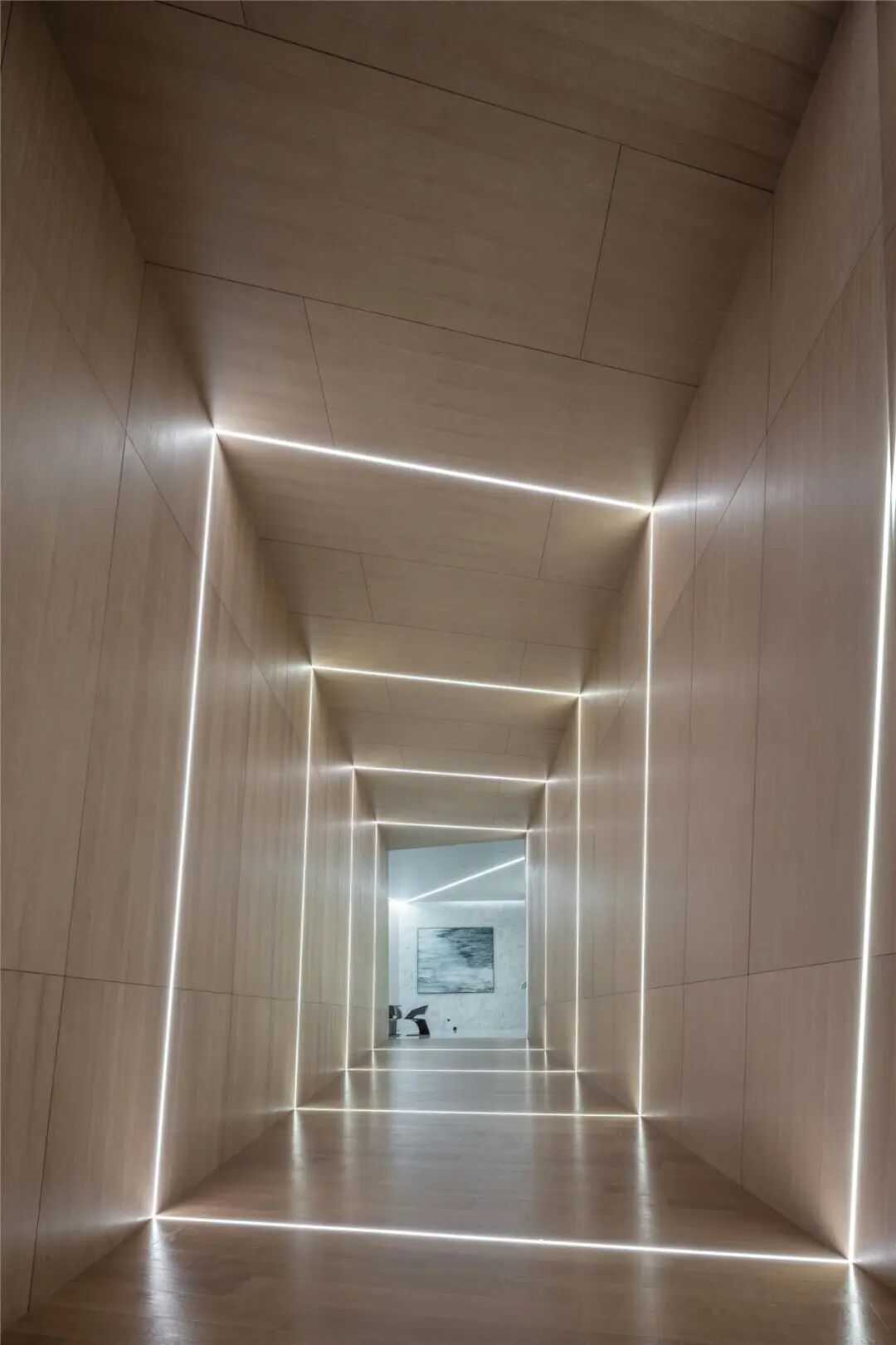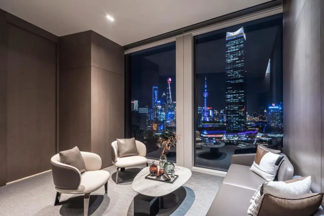 敞的前区中庭设计,落地窗前与陆家嘴金融贸易区相望,一览无余的城市景致尽收眼底。主灯光纤艺术装置强化了空间的艺术性。镜面材料天花对空间进一步拉长深化的效果,丰富视觉层次。
