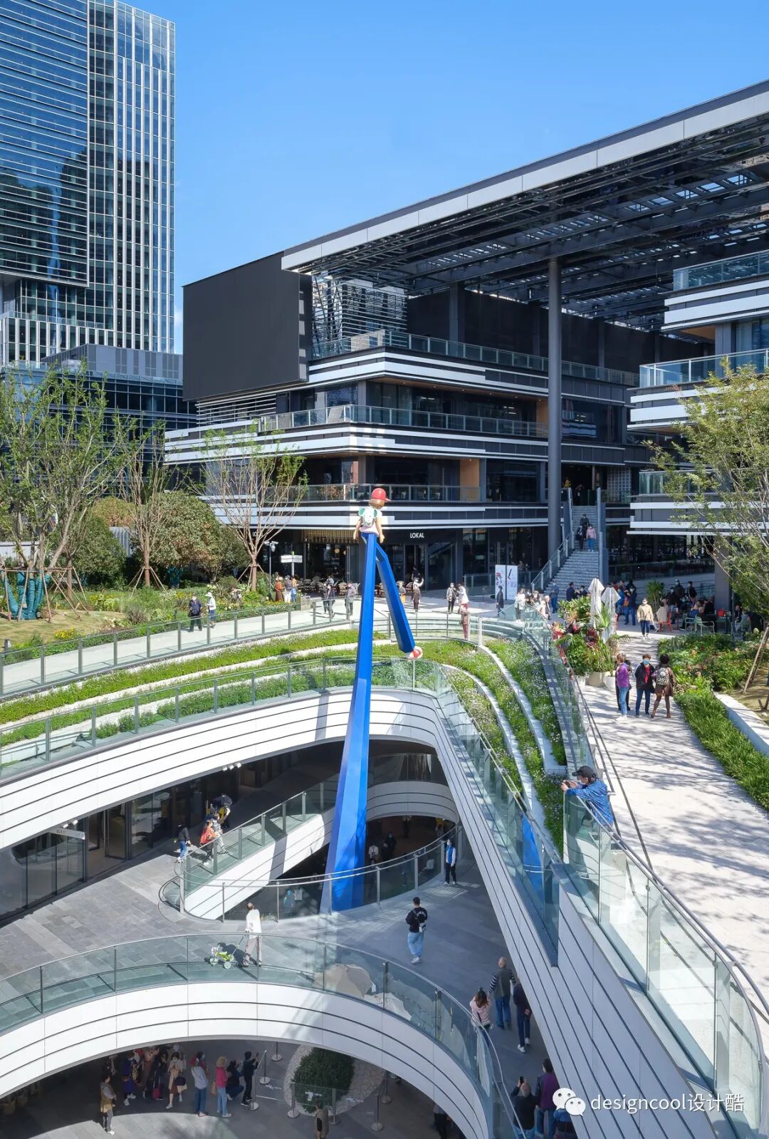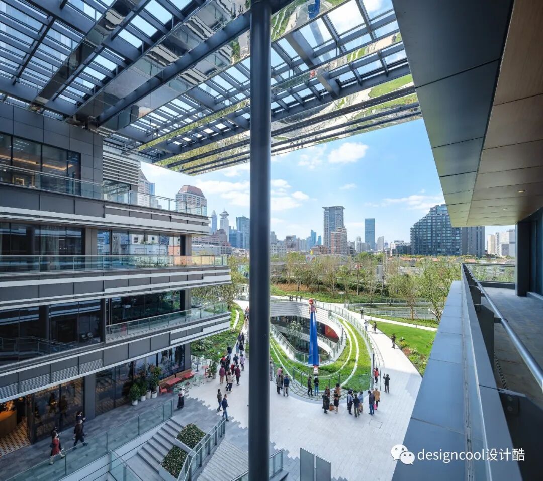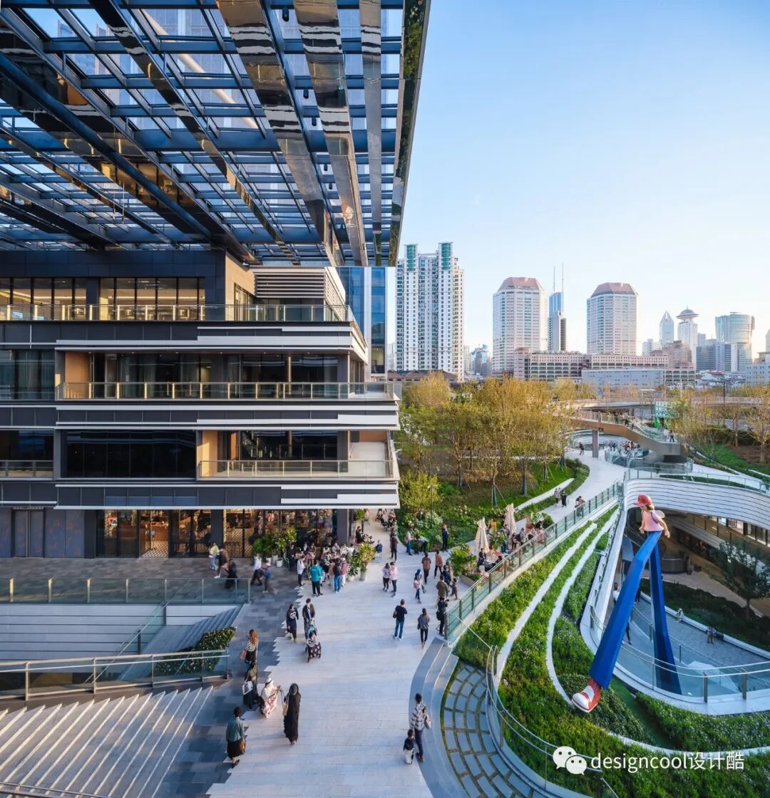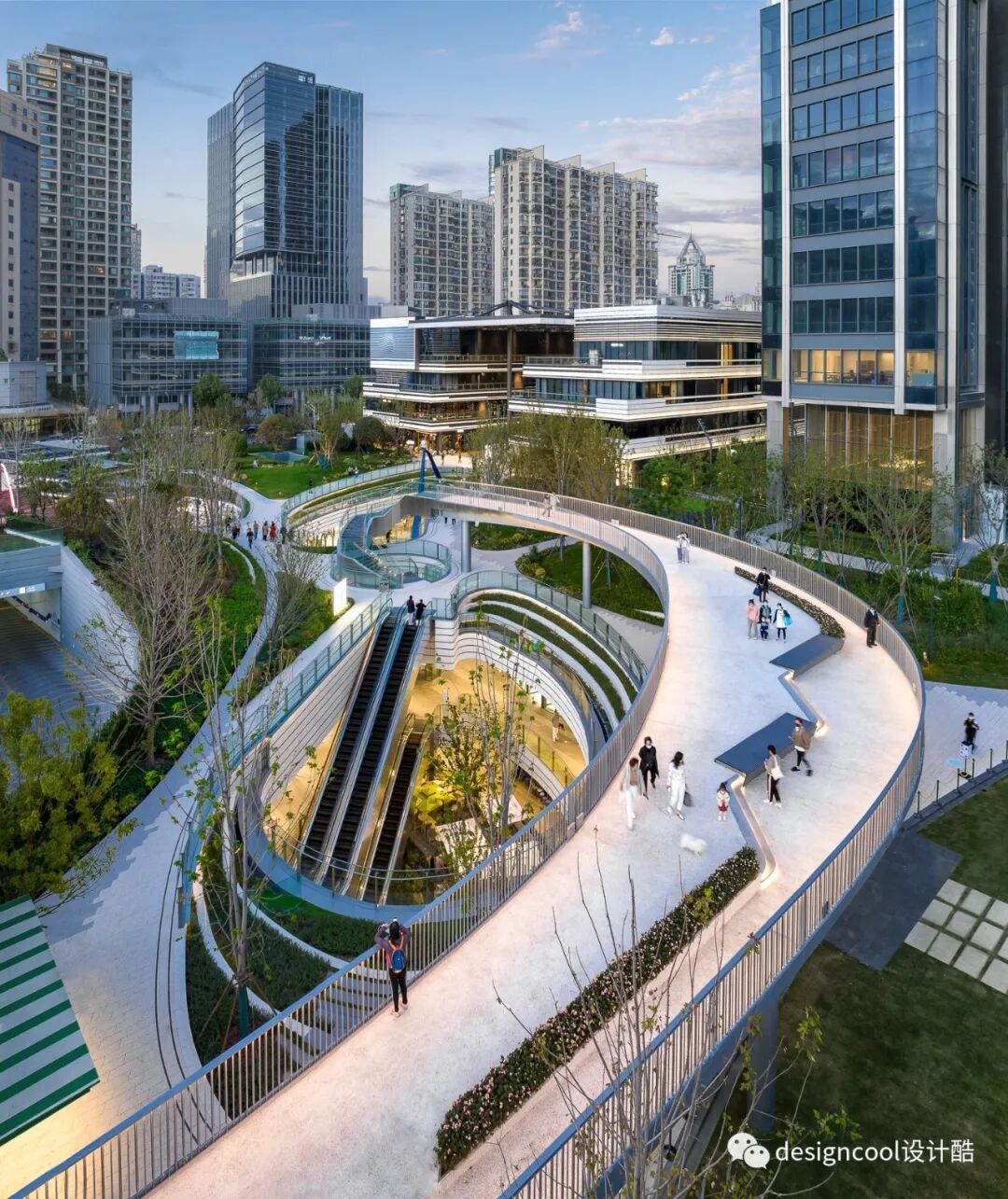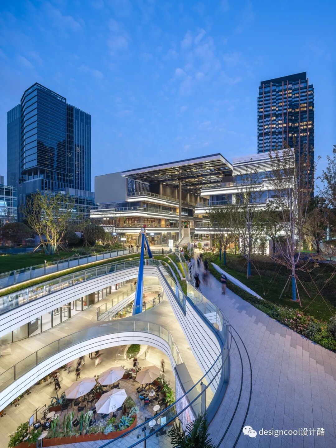 Rounding out Kokaistudios’ recent Suhe MixC World in Shanghai which comprises a commercial space within a brand new green land, this mixed-use building contextualizes the project into its urban and green surroundings and elevates its presence in the city, all the while complementing and echoing neighboring architecture of the landmark tower.