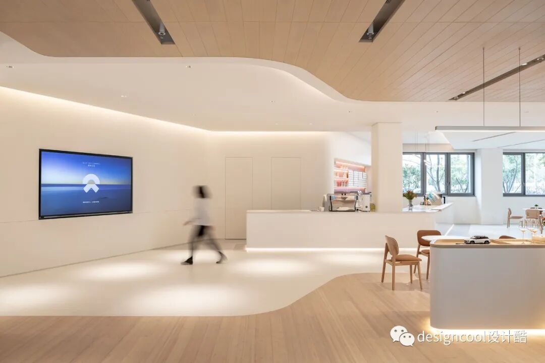 Realized in just seven months, the NIO Delivery Center has fast become a landmark in Jiading district thanks to its distinctive facade. Not only is it highly visible from the street, it also evokes the sleek lines and smooth movement of the electric vehicles themselves. Inside, the delivery center stays true to Kokaistudios’ redefined design template for NIO spaces. The interiors are reflective of NIO's brand principles — pure, human, progressive, sophisticated — by way of instruments including a muted palette, nature-inspired materials, multimedia displays, and a palpable focus on comfort.
