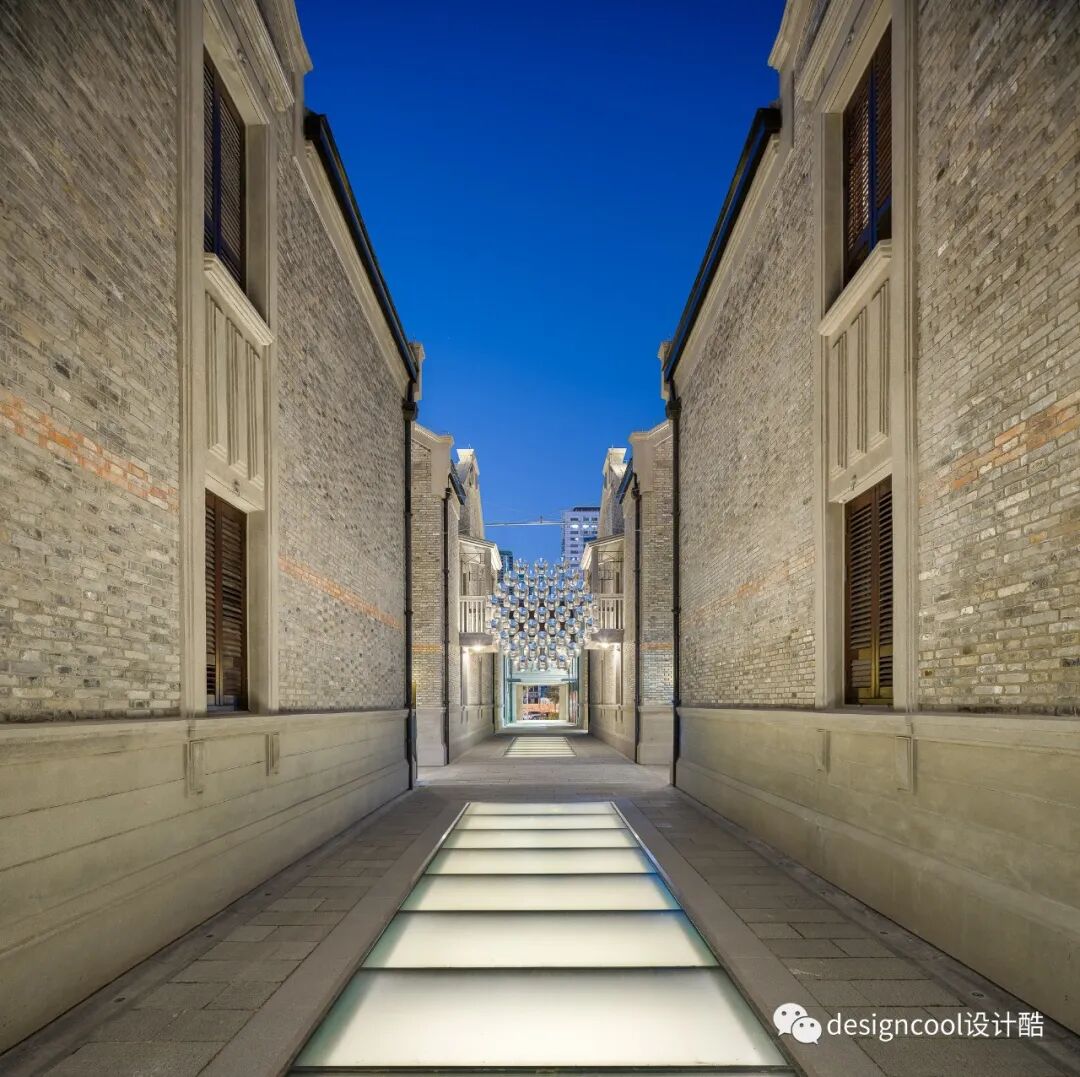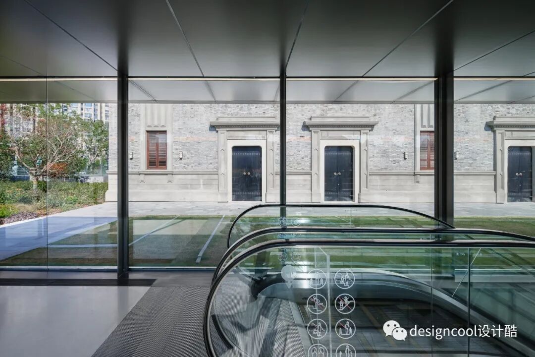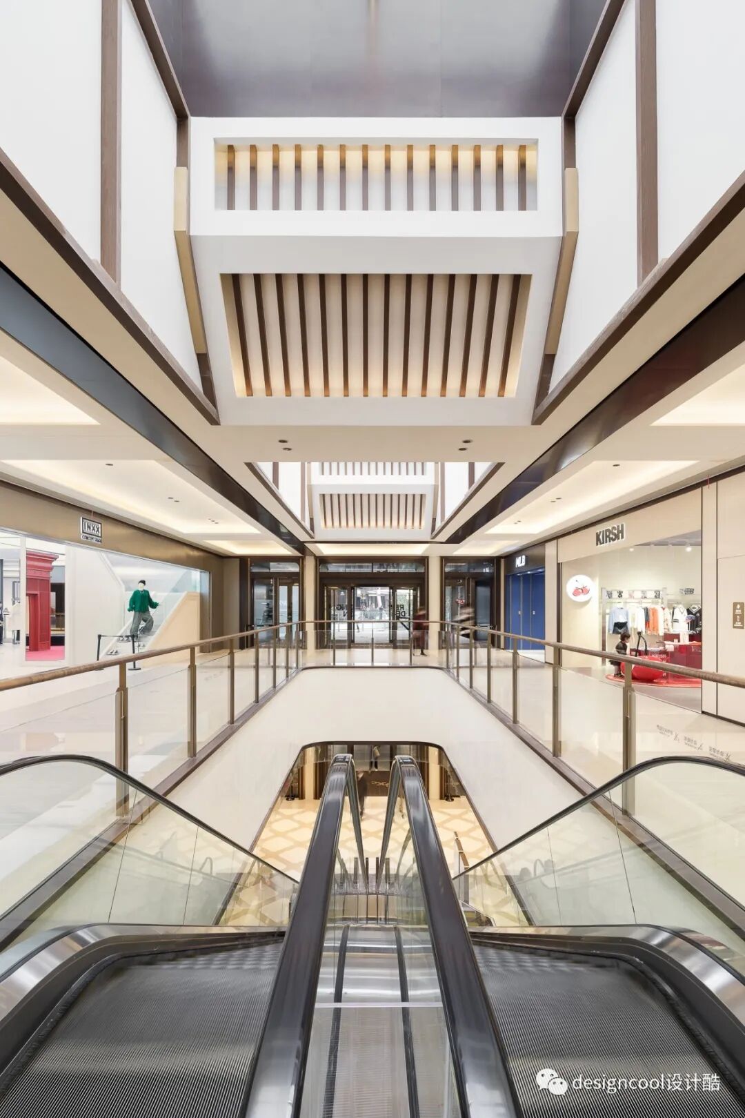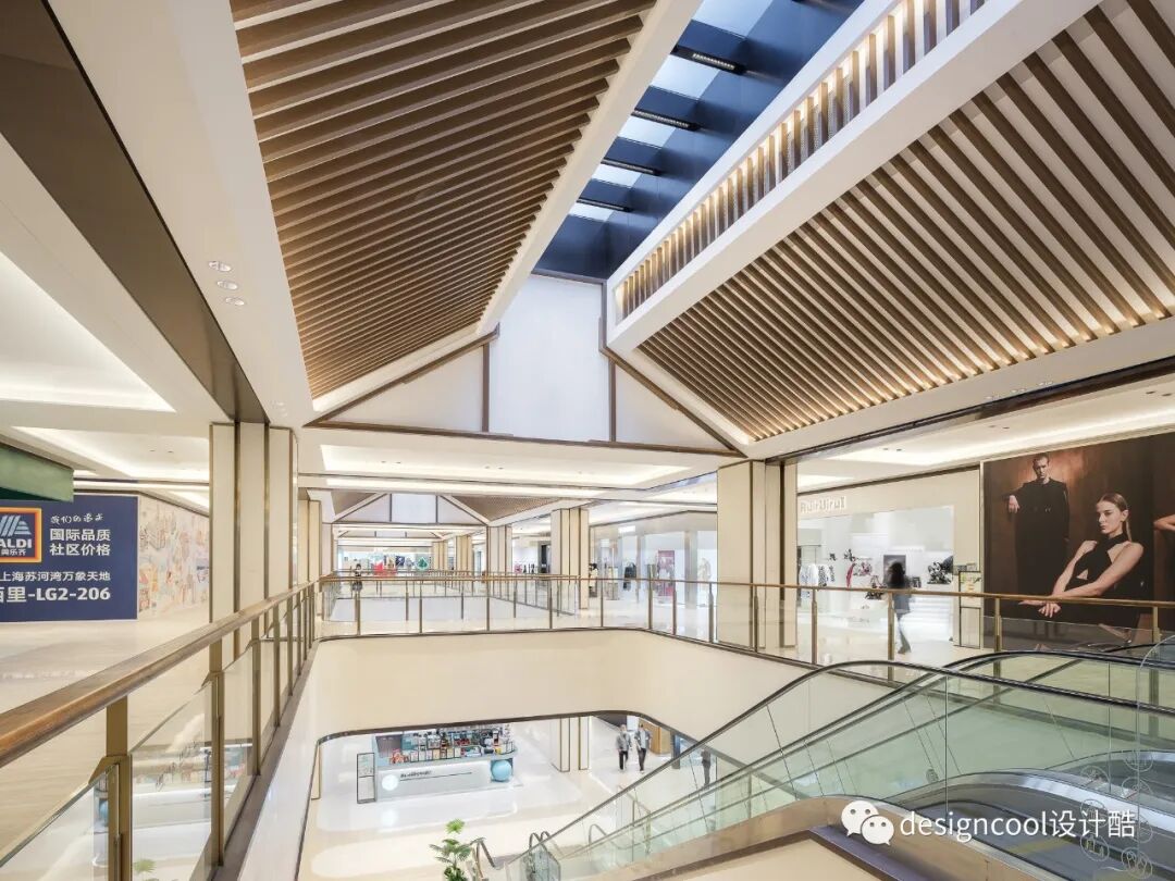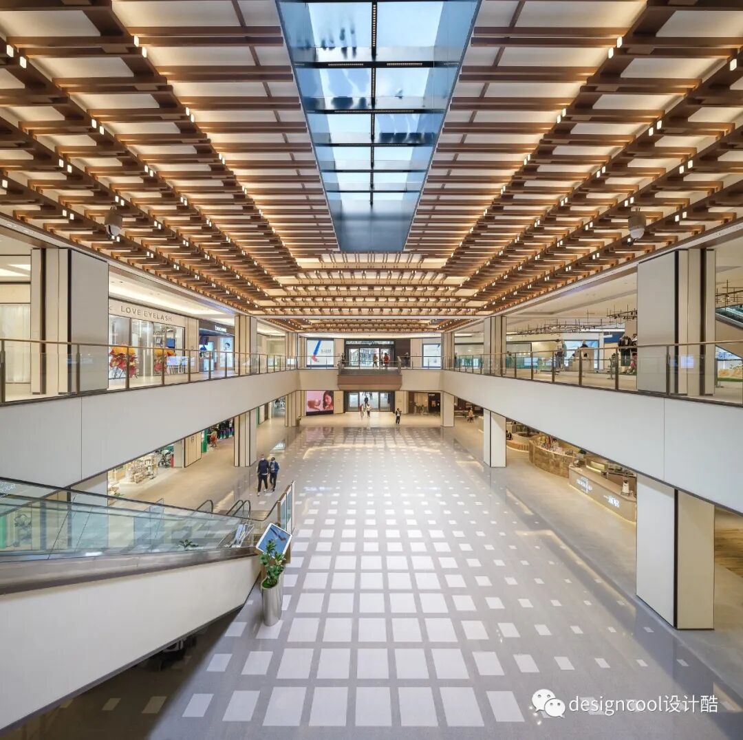 Inside the mall, two enclosed areas have been designed to physically and visually connect with the site’s significant culture heritage, Shenyu Li and Thean Hou Temple. The commercial space located directly below is succinctly integrated with the historic heritage on the ground floor and compactly locates the entrance, axis and underground public atrium. Kokaistudios' interior design team extracted elements from the structure of the traditional lilong house and apply these to the design. The combination of the glass roof windows and the lightweight wooden rafters ceiling recalled the memory of history. Designed as “a dialogue between commercial and heritage”, they integrate the conservation building with the commercial public space as a spatial technology.