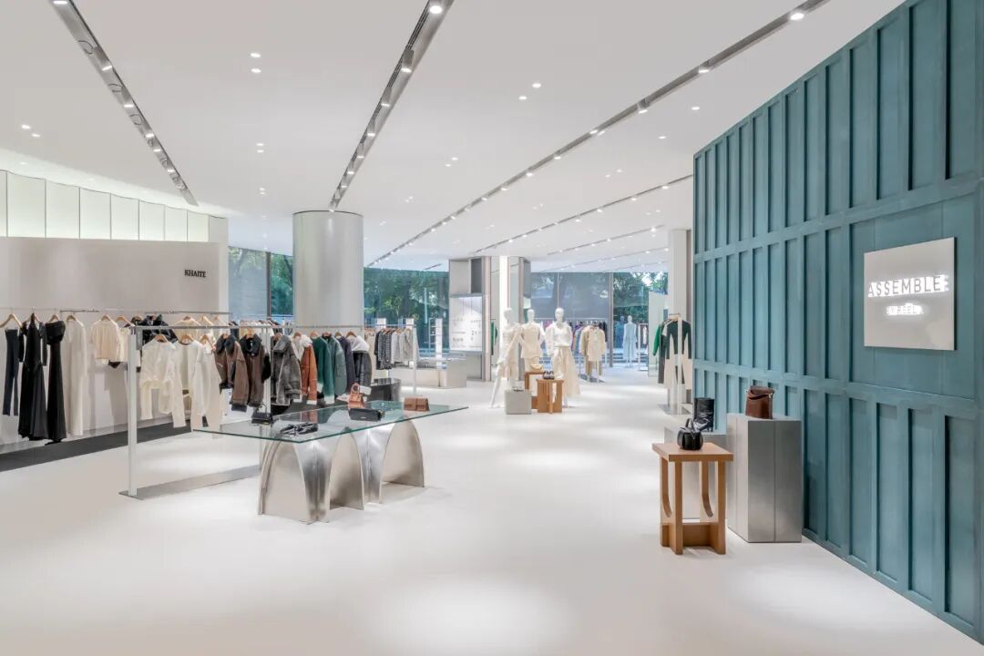 2022 年,高端设计师品牌集合店 ASSEMBLE by Réel 将经营空间扩展到上海芮欧百货的一层。本次新开业的女装店以“城市碎片”为概念,采用极简主义的设计手法,以动态的墙面角度呈现从工业到古典的建筑元素,并使用天然木材、釉面火山石等材料,从而创建了清晰多样的动线。
