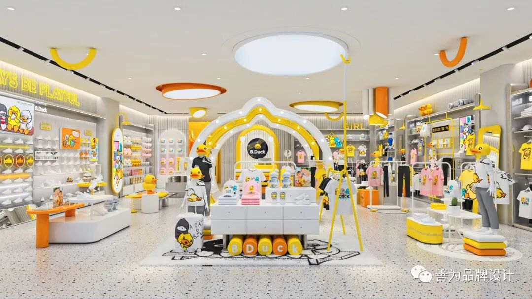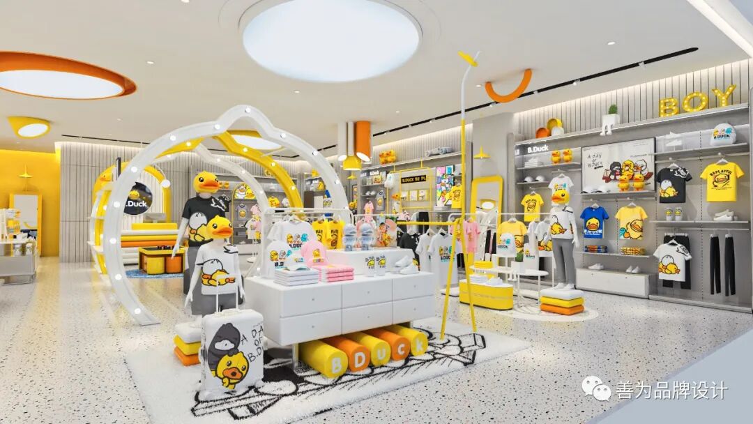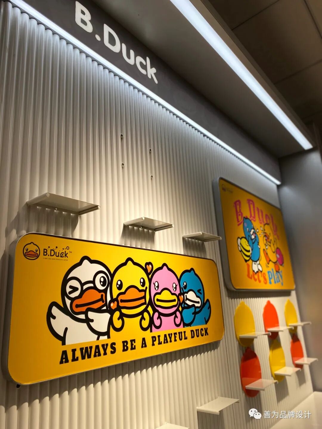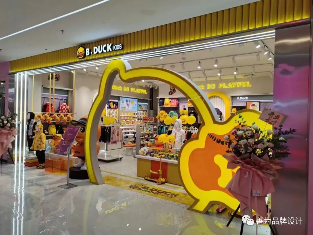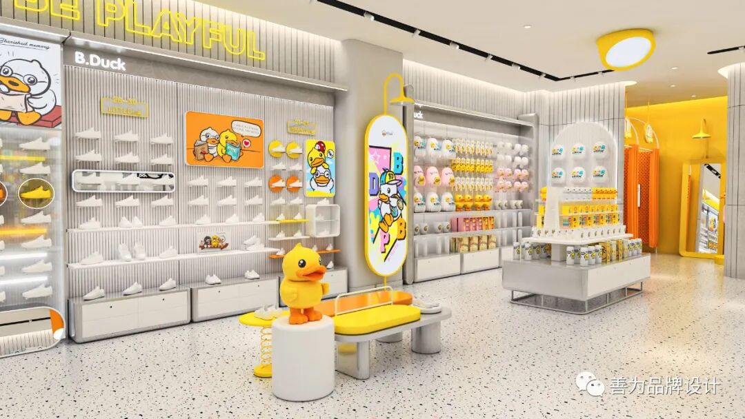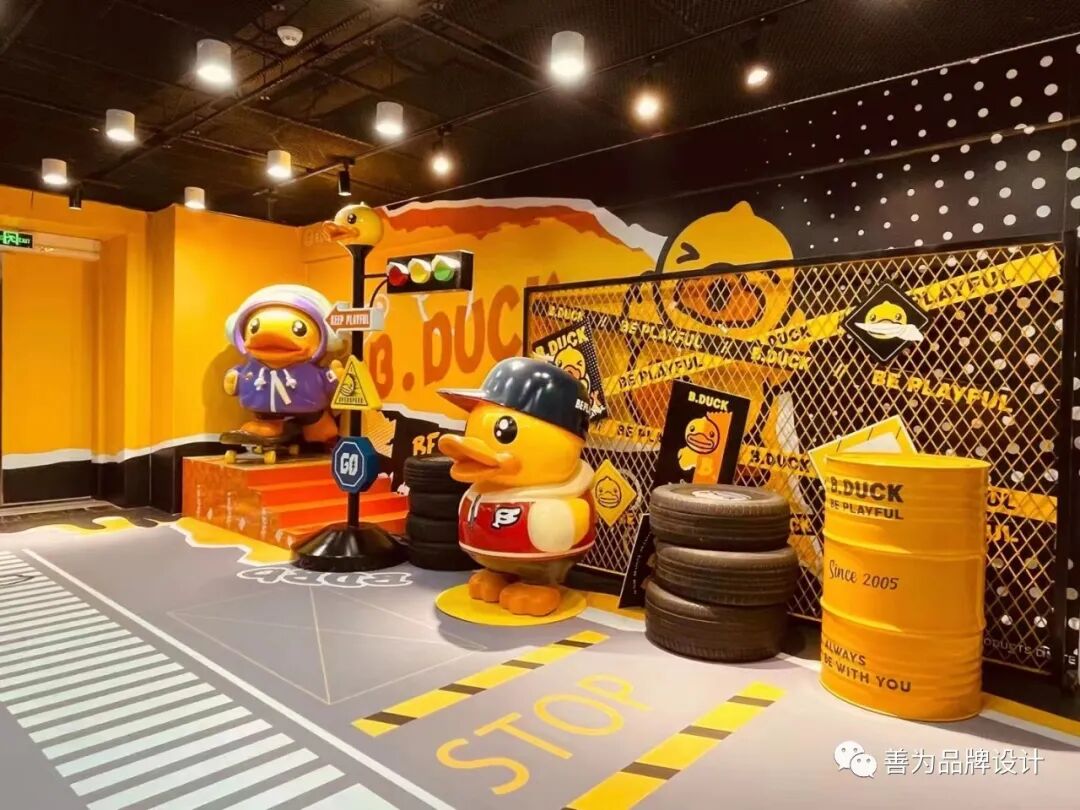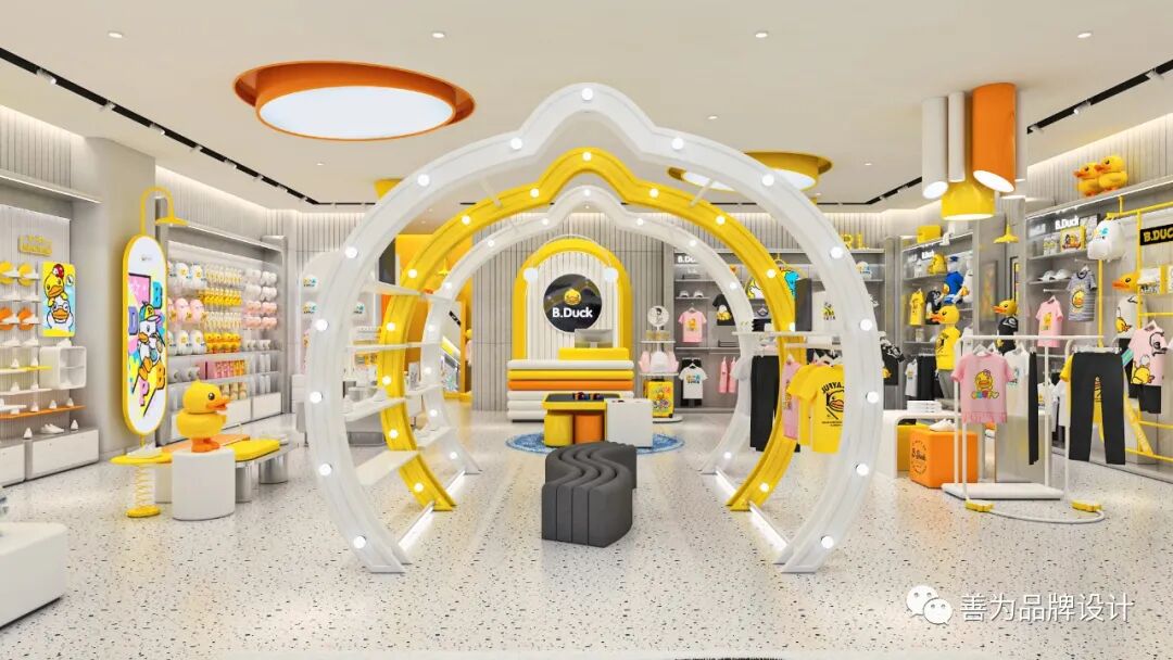 在视觉表达上利用色彩模块组合,直观突出品牌的时尚潮流感。入口延续初心B.Duck经典鸭造型,凸显品牌多元艺术时尚风格的表达。