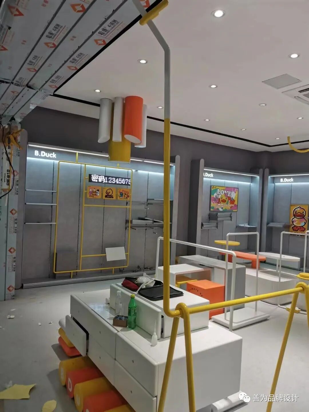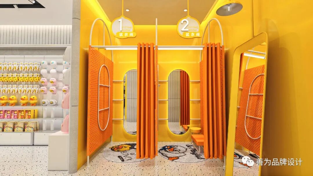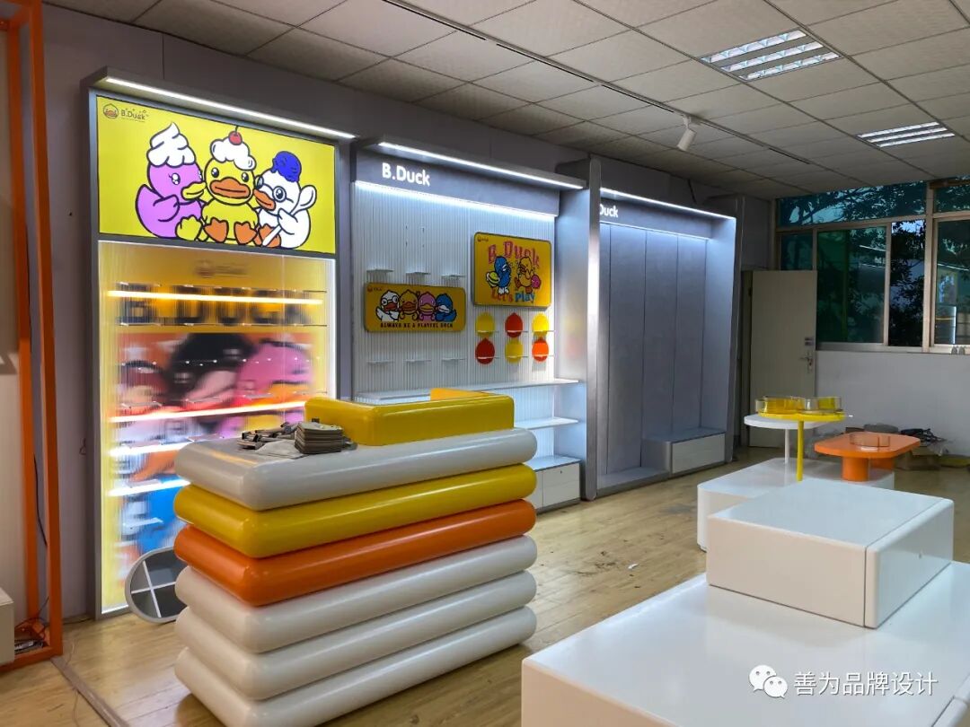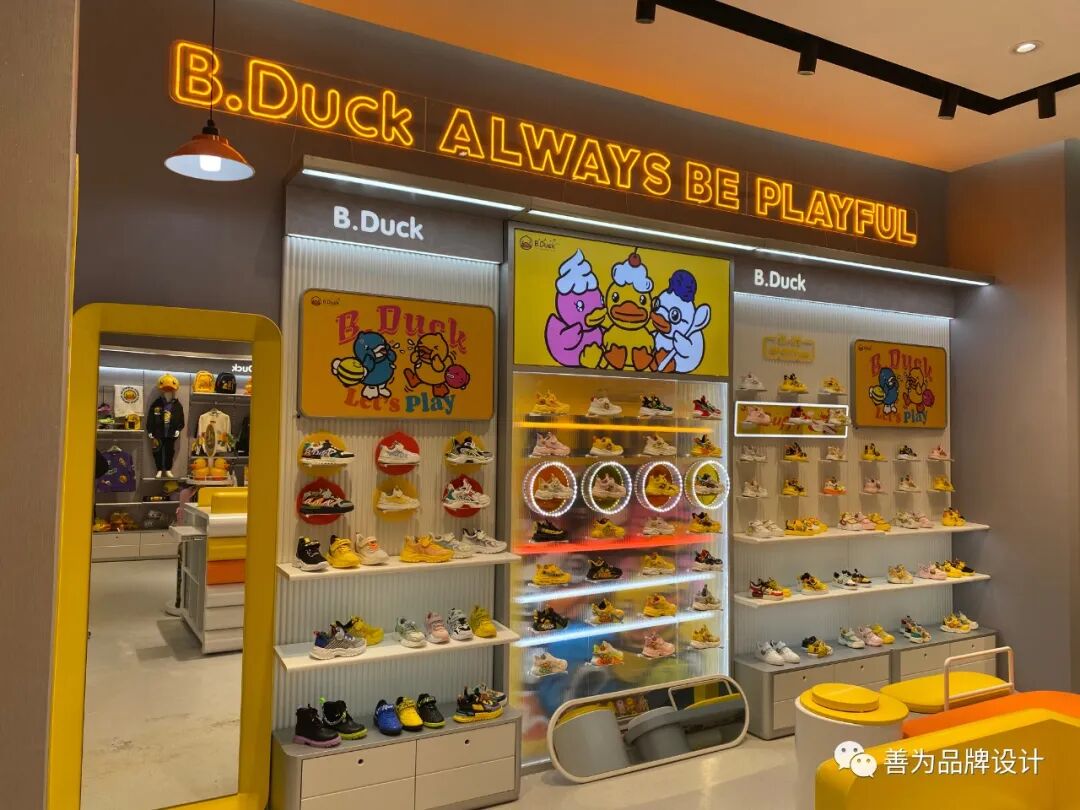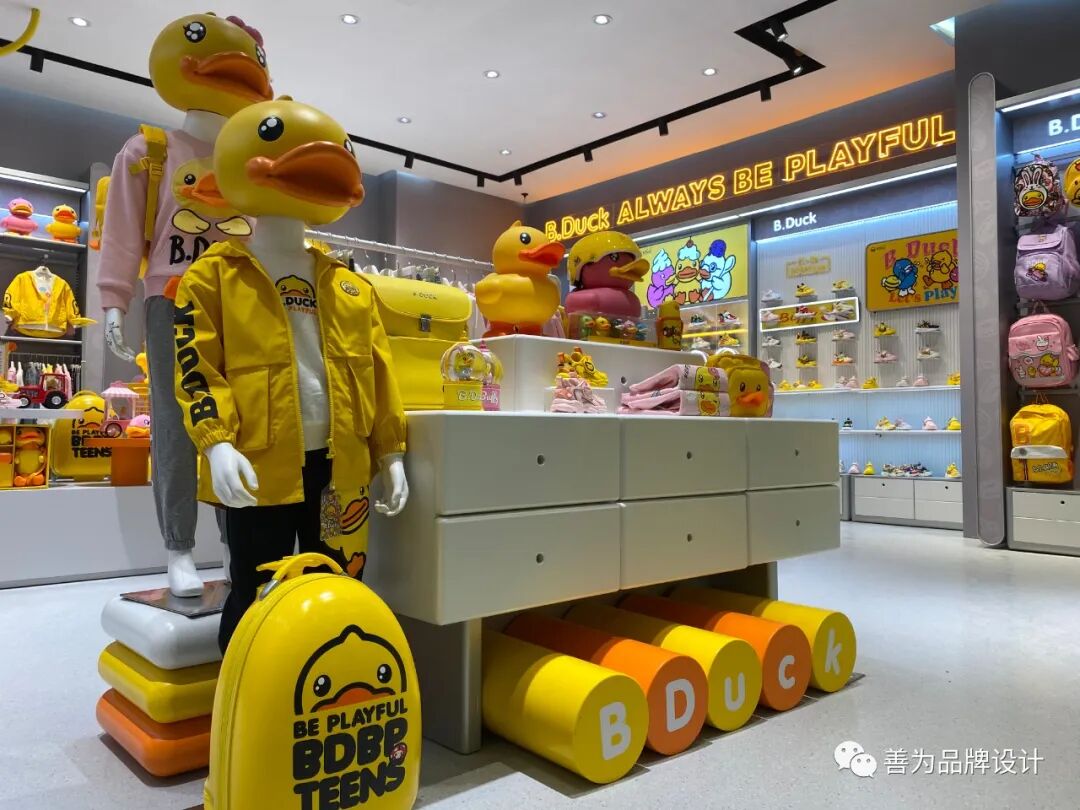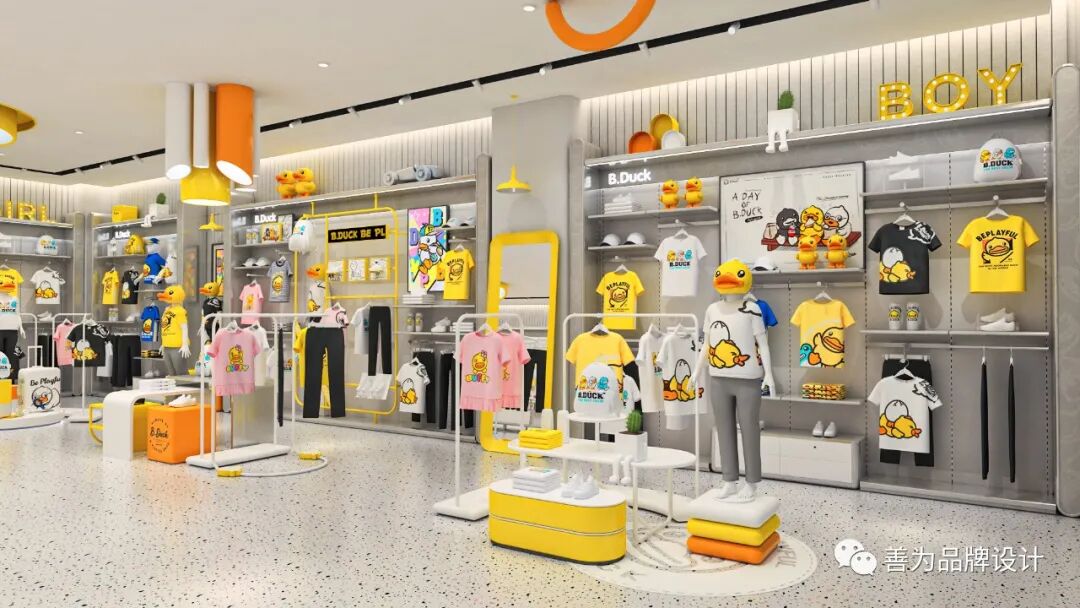 在视觉表达上利用色彩模块组合,直观突出品牌的时尚潮流感。入口延续初心B.Duck经典鸭造型,凸显品牌多元艺术时尚风格的表达。