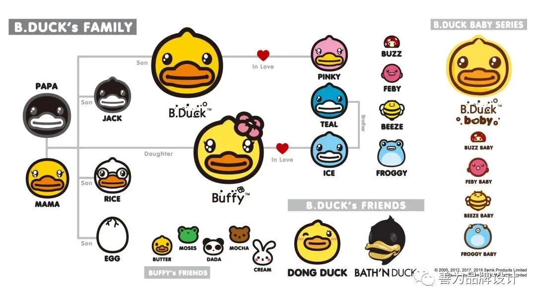 和所有成功的IP角色一样,B.Duck也有着衍生而来的一系列“小伙伴”们。自B.Duck小黄鸭在全球IP市场风靡以来,设计团队已创作出其他26个自主IP,即B.Duck小黄鸭的家族成员及朋友。