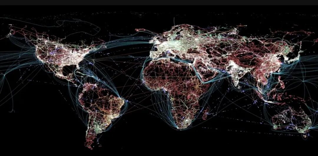 如果没有疫情,没有贸易战,全球每天5万架飞机在飞,往来最密集的就是亚洲,航线密到已经画不清楚了,一班机去,一班机回来。几个大洋之间每天有非常多的船只进港出港。
