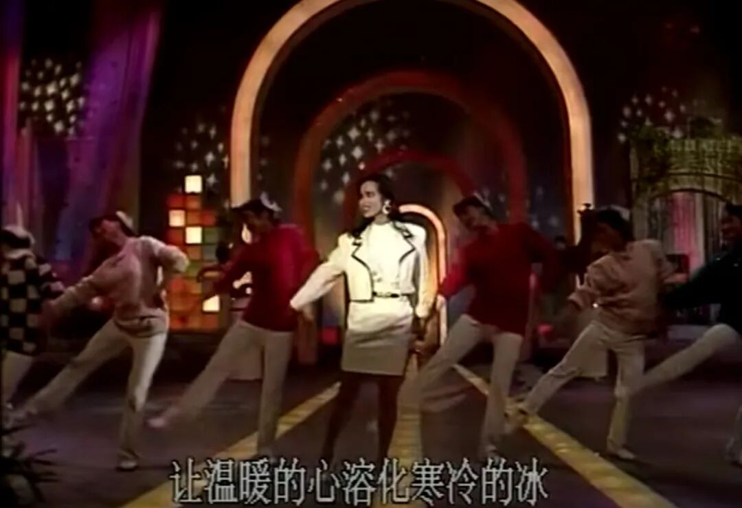 1985年,汪明荃成为第一位登上春晚舞台的香港地区女艺人,亮片蝙蝠袖设计的礼服,港风巨星最“标准”的样子就大概是这样。