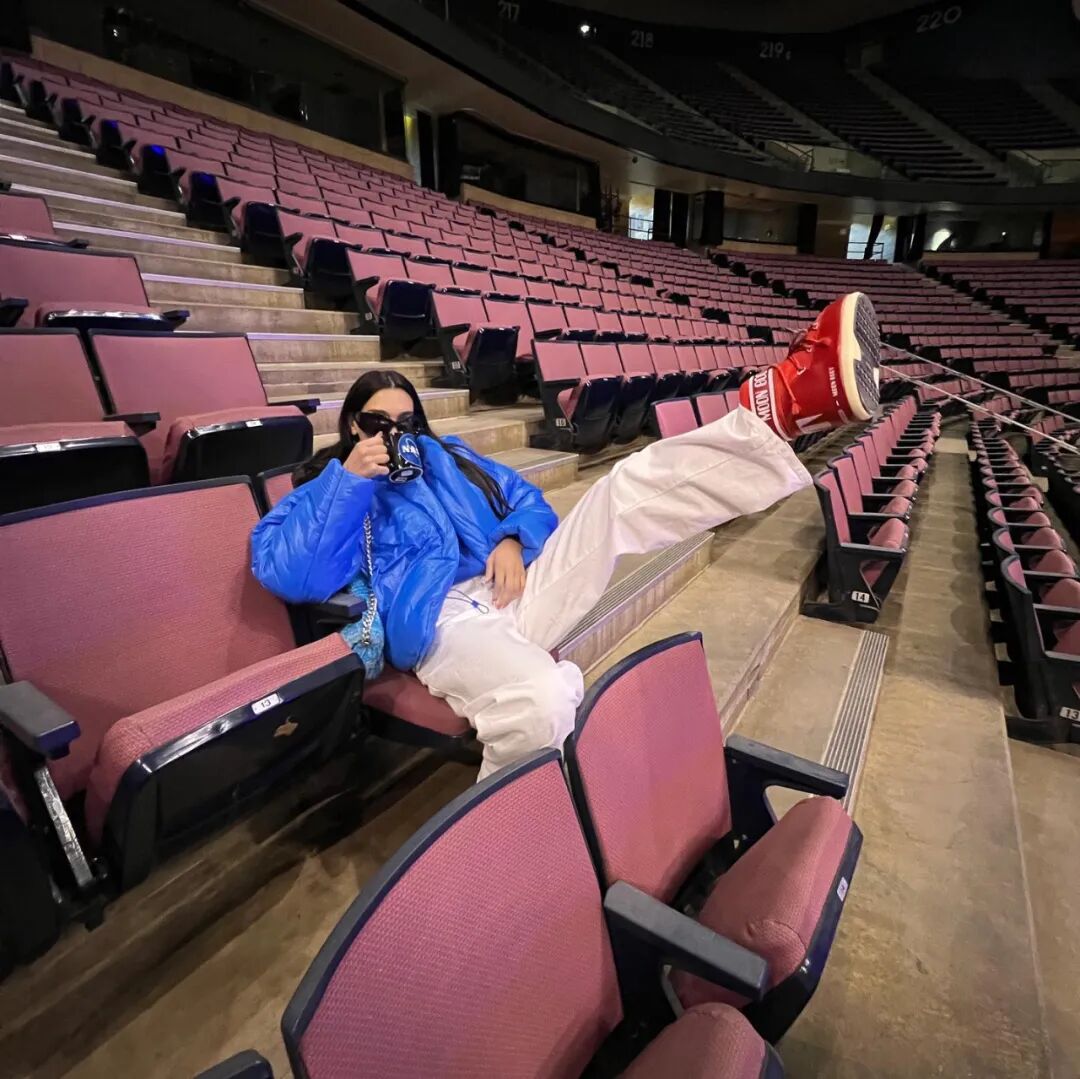 但请注意,这可不是20年前的流行单品,Dua Lipa前两周在演唱会体育场里也穿上了Moon Boots,配上Yeezy x GAP的蓝色棉服,当代时髦爱豆的这身嚣张打扮不能不爱吧?