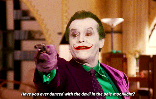 1989年Tim Burton版中的Joker是Jack Nicholson,绝对是一代人的少年时代噩梦,刷白的脸孔,高挑的细眉,咧开嘴巴的形象就此烙进90后的回忆里。