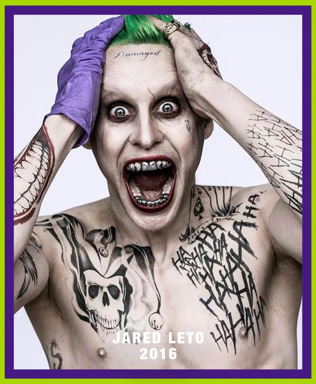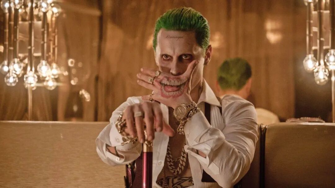 Jared Leto版大概是所有版本小丑中的“fitness明星”,虽然没有在《蝙蝠侠》系列里露过脸,但也是凭他自身的颜值收割了一批粉丝。戏份虽然少,但是化身痴情反派追求小丑女的桥段的确给冰冷的角色加入了不少烟火气。