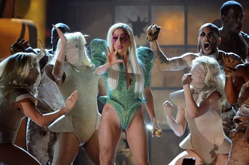 2011年,Lady Gaga在一个巨型的蛋里降临红毯,全程没有下地,没有露面,由穿着乳胶衣服的“大力士”们抬着,这其中浓浓的科幻电影中的宗教感,绝对是有史以来最为震撼的红毯入场moment。直到舞台表演,巨大的蛋被抬上了舞台,蛋壳打开如异型孵化了出来,粉丝心目中的Mother Monster——Lady Gaga露出了真面目。