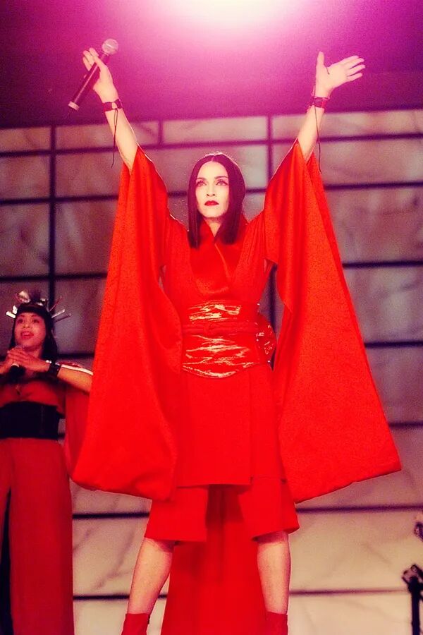 Madonna的这一身红色Jean Paul Gaultier艺妓灵感look绝对是她众多舞台造型中,最为致命美丽的一个。她的这身造型甚至应该作为最终大boss的战袍,出现在2003年的「杀死比尔」里。