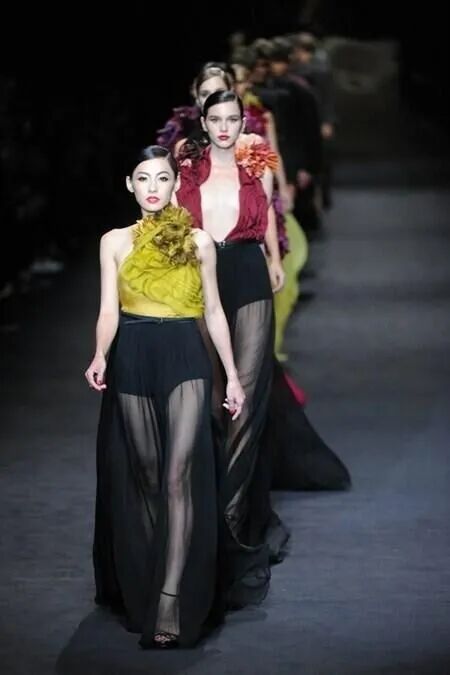 除了Hermes,张曼玉还两次走上过法国老牌时装品牌Jean-Louis Scherrer的高定大秀。