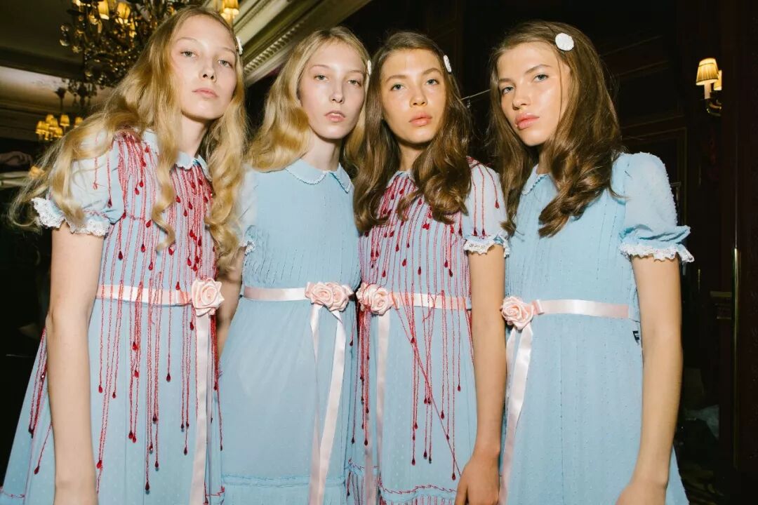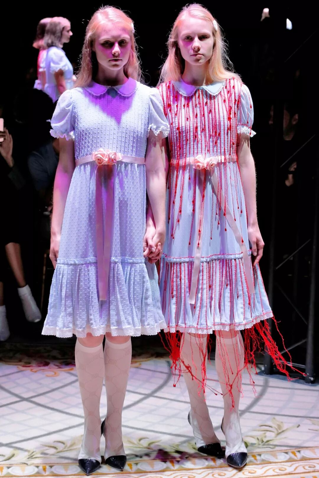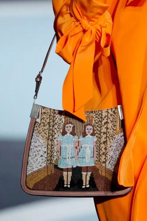 GUCCI Prada 2016 SS Menswear 还有Marco de Vincenzo,2018春夏秀场,出现过一款闪灵姐妹花的针织手袋,恐怖氛围🈚️,可爱氛围感倒是拉满了。