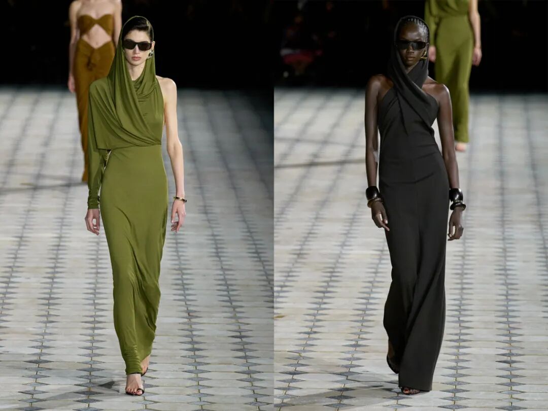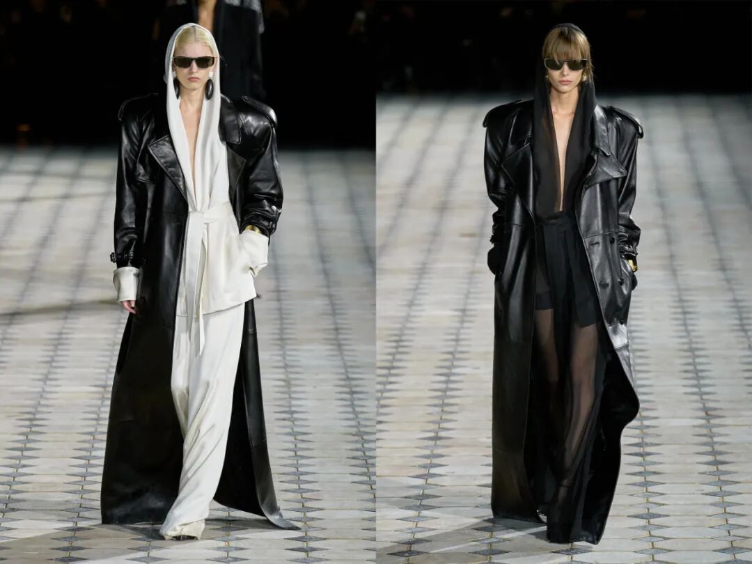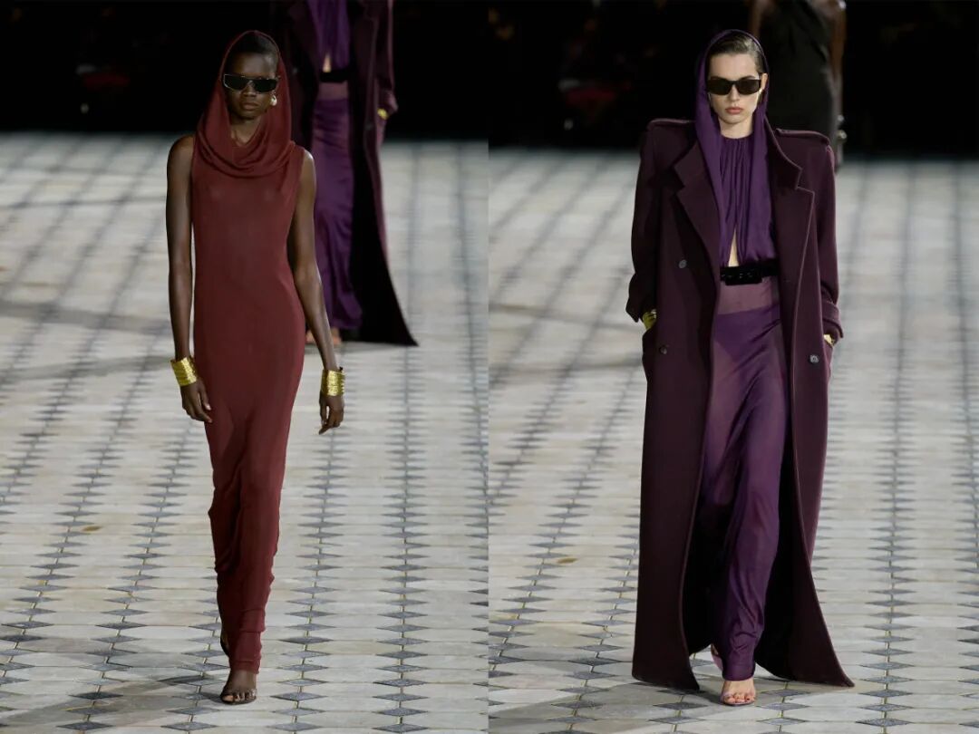 70s-80s的灵感打造了这一个浑身散发着高级感的系列,宽大的垫肩、轻薄连体衣,大量的连帽look也都是由品牌70年代的archive中而来,极度冷艳时髦的YSL女郎,无需在乎社交媒体的流行,只管自己的优雅。