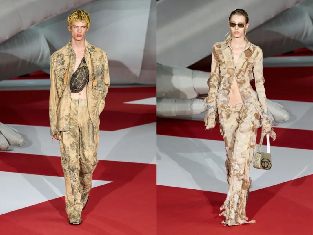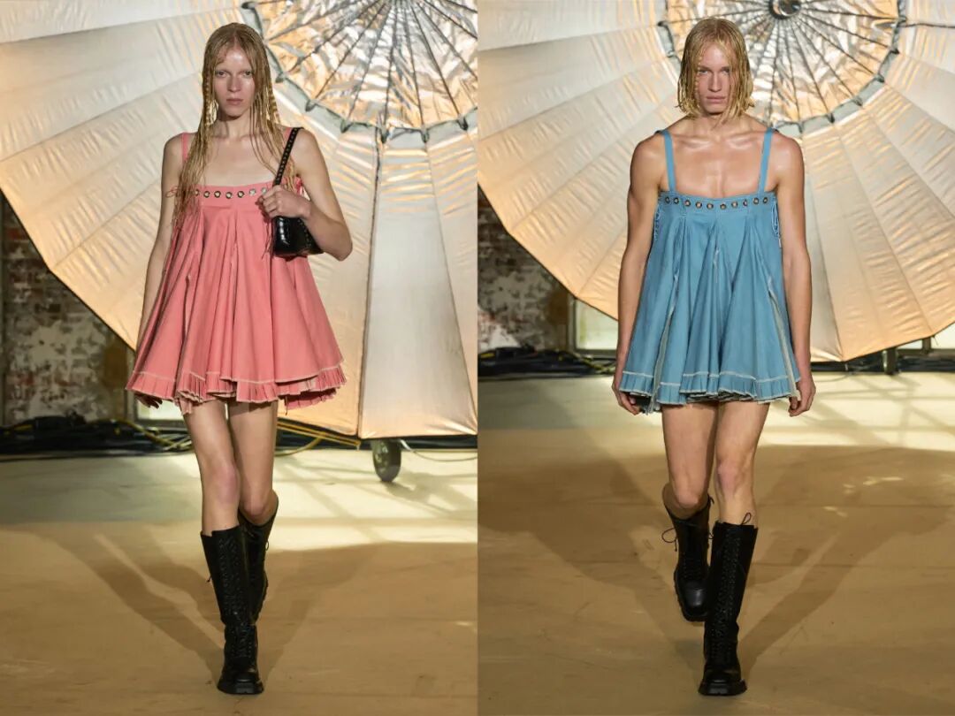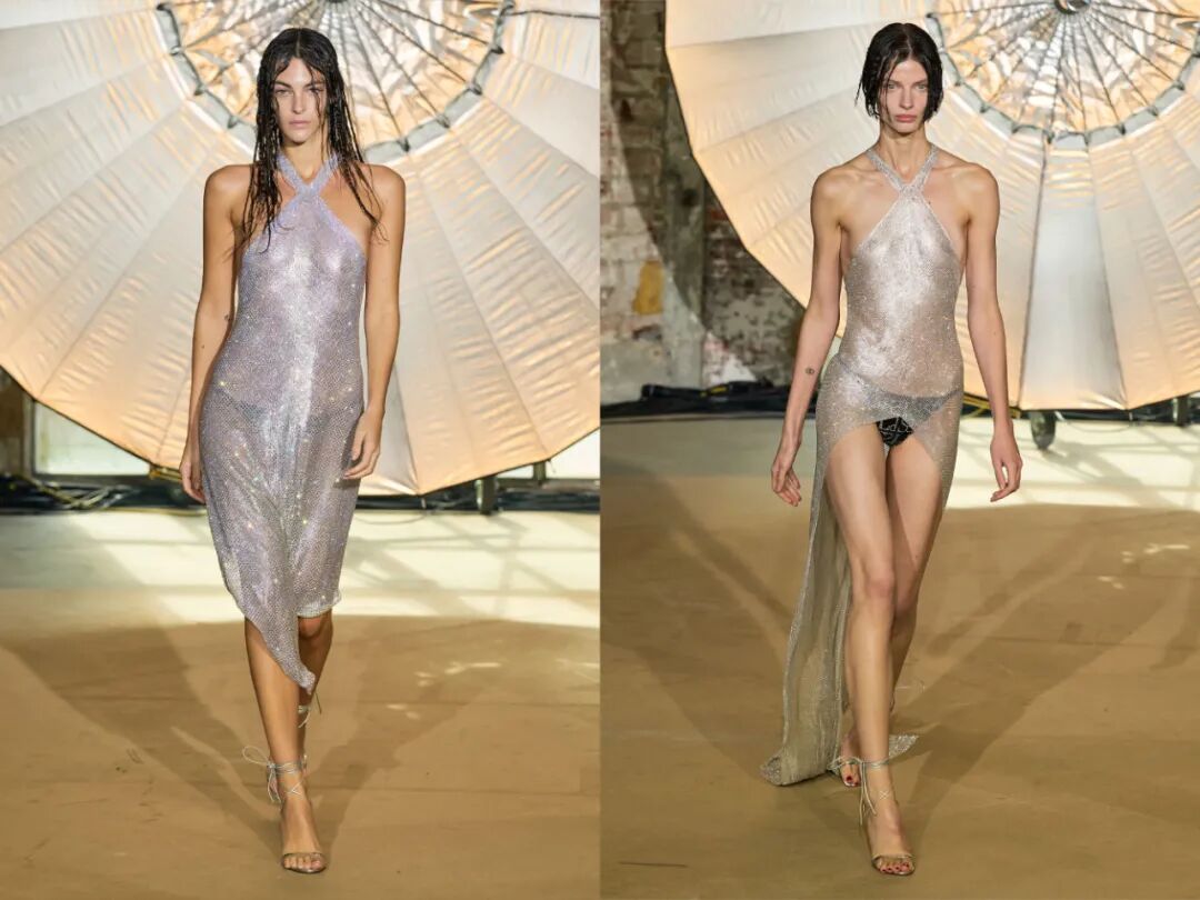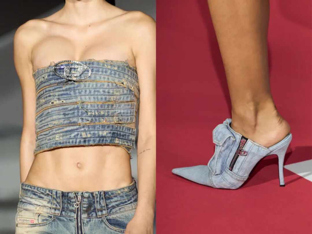 设计师Glenn Martens显然懂得互联网营销的重点,重度洗水的牛仔单品、像从废墟里挖出来的废土风单品、镭射风的清凉比基尼套装,让人不得不爱。这场秀还贯彻时尚民主化,开放了免费秀票给3000位粉丝预约,1600位米兰的设计学院学生也获得了秀票。