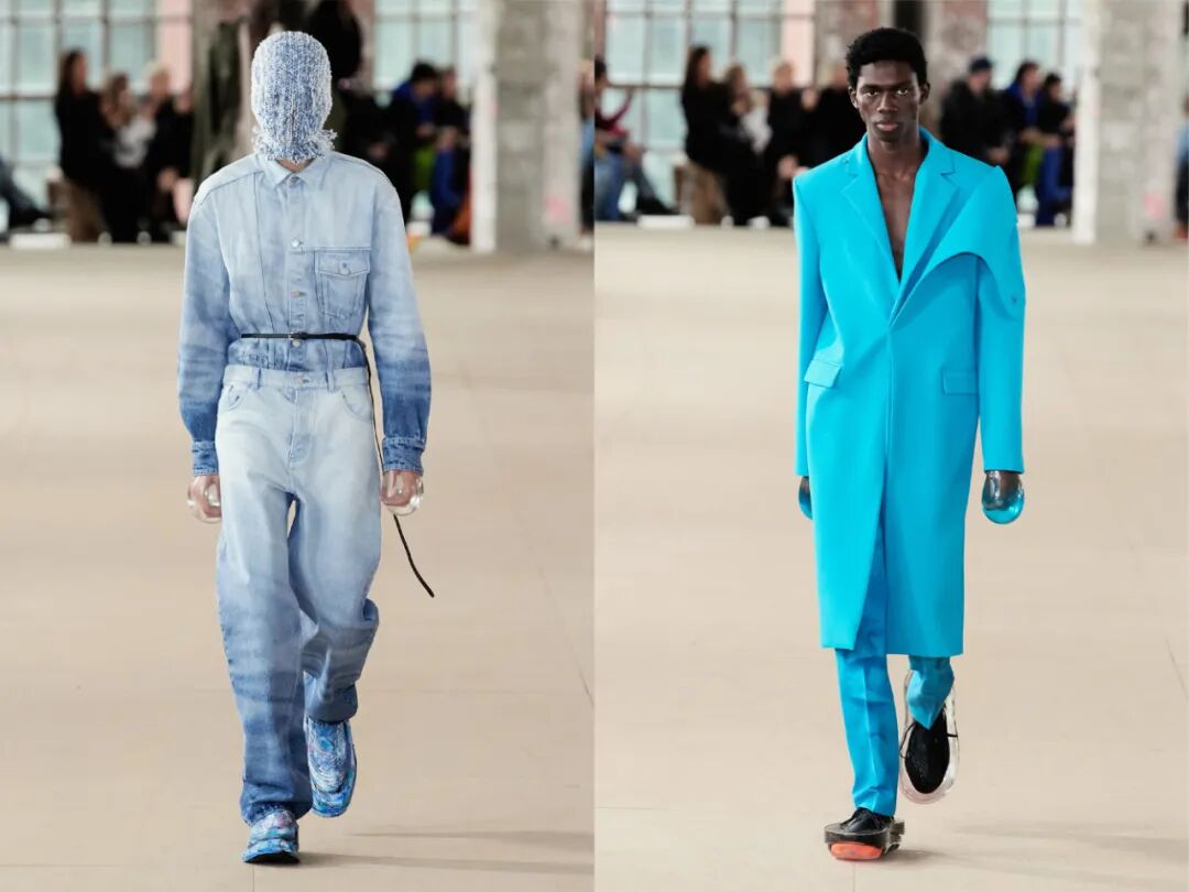 探索新材料、新技术虽说听起来不像是设计师该做的事情,但确确实实就是他们必须要考虑的方面。像是Matthieu Blazy上任以来的两季Bottega Veneta,就实打实地强调着自家的“科技与狠货”,通过多次的印刷、鞣制,让皮料呈现出牛仔、棉质衬衫的质感,但当你看到动辄大几万的定价,就会了解这大概就是传说中的“富豪穿休闲”吧。