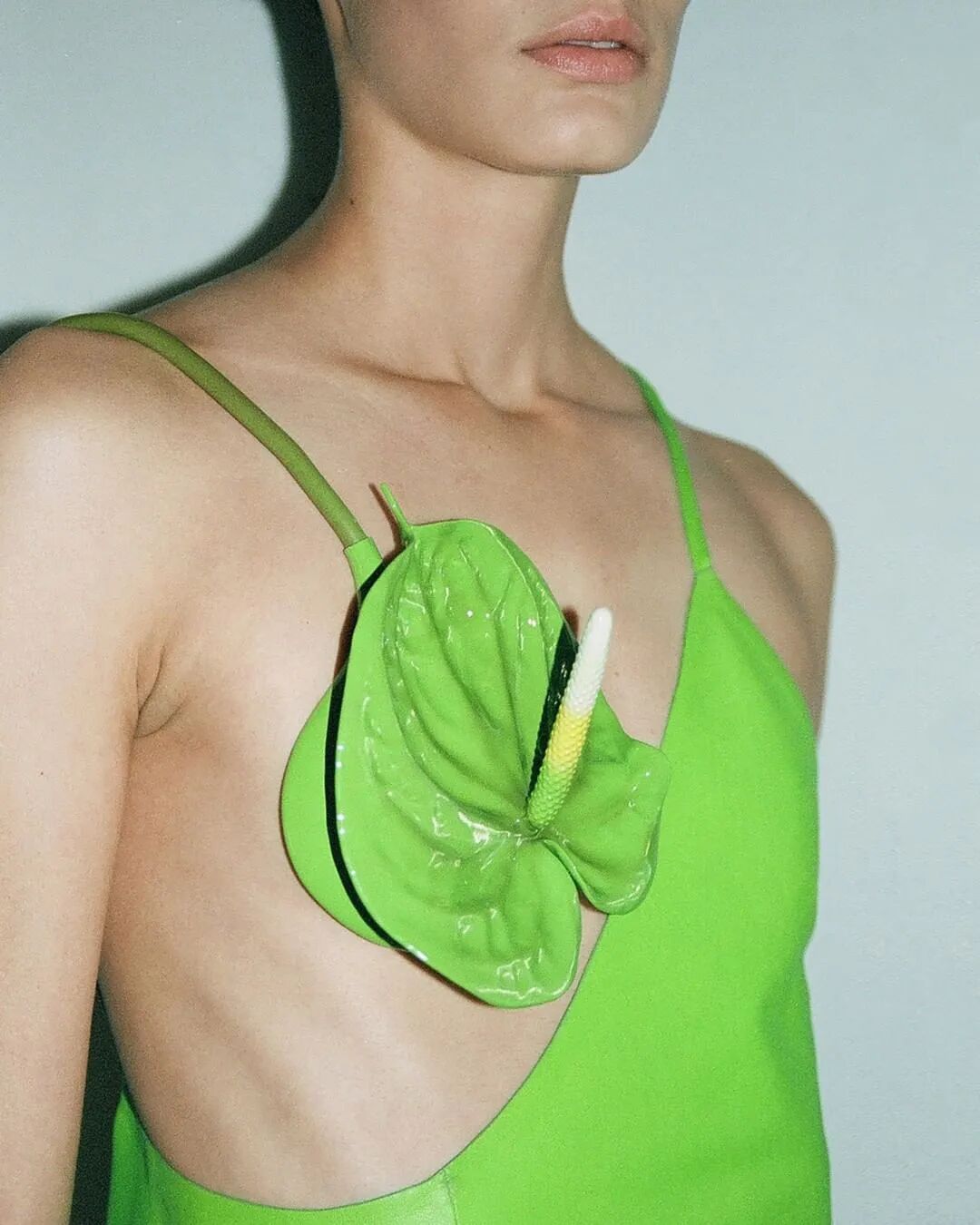 这两年,热植圈中炒的最火的植物必属花烛(在我们花市中最常见的红掌,其实也是一种花烛,超季拥有大牌同款的乐趣可能只需20就能实现),大概Jonathan Anderson也是有在关注这样的信息,几乎就是围绕这一种植物发展出了整一个2023春夏系列。