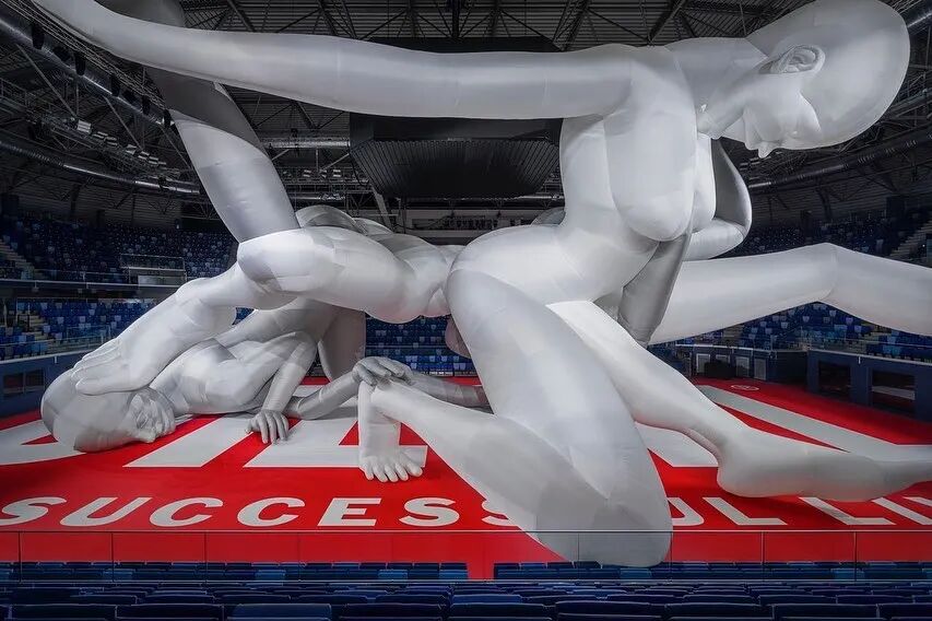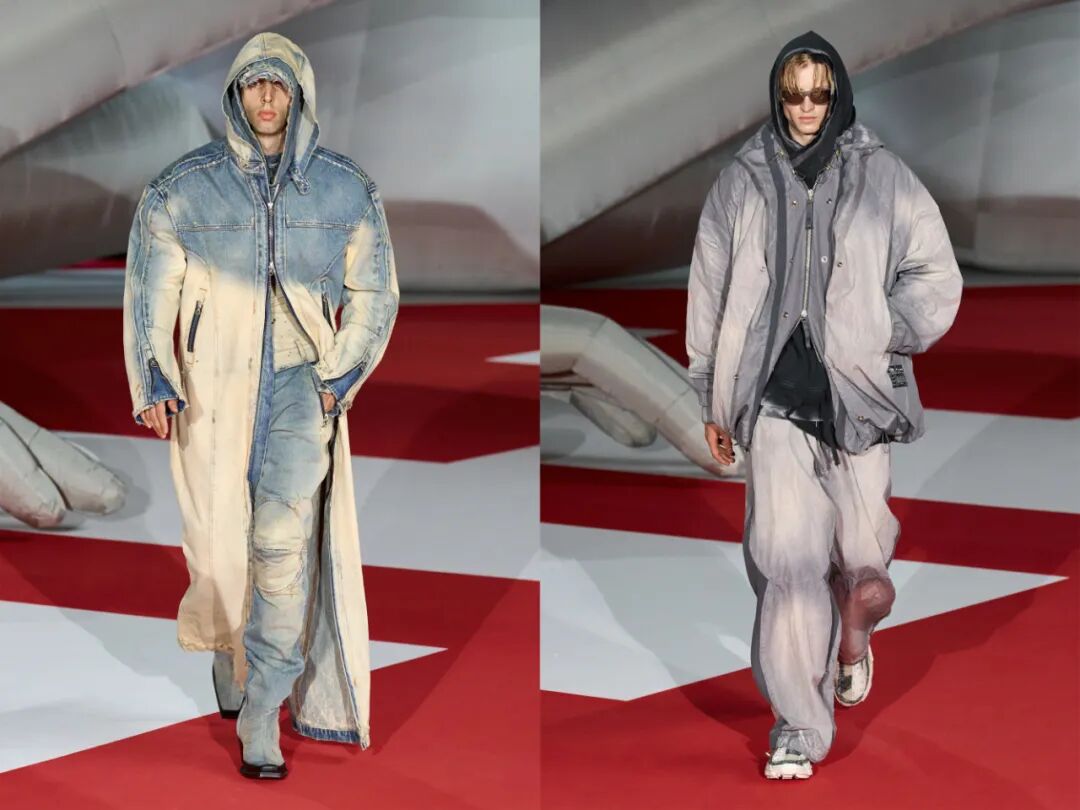 Balenciaga的世界末日或许是因为陨石的撞击,那Diesel的世界末日绝对是因为巨人来袭。穿上高跟鞋人均185+的模特们,却如同蝼蚁一般从巨人充气玩偶身边走过。